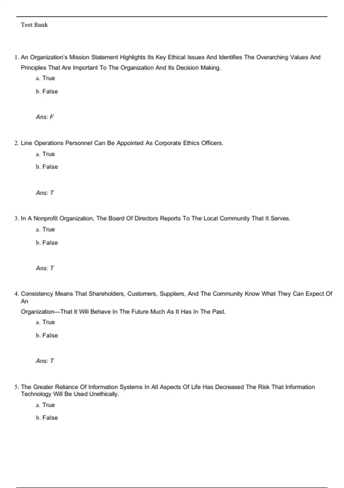 1. An Organization’s Mission Statement Highlights Its Key Ethical Issues And Identifies The Overarching Values And