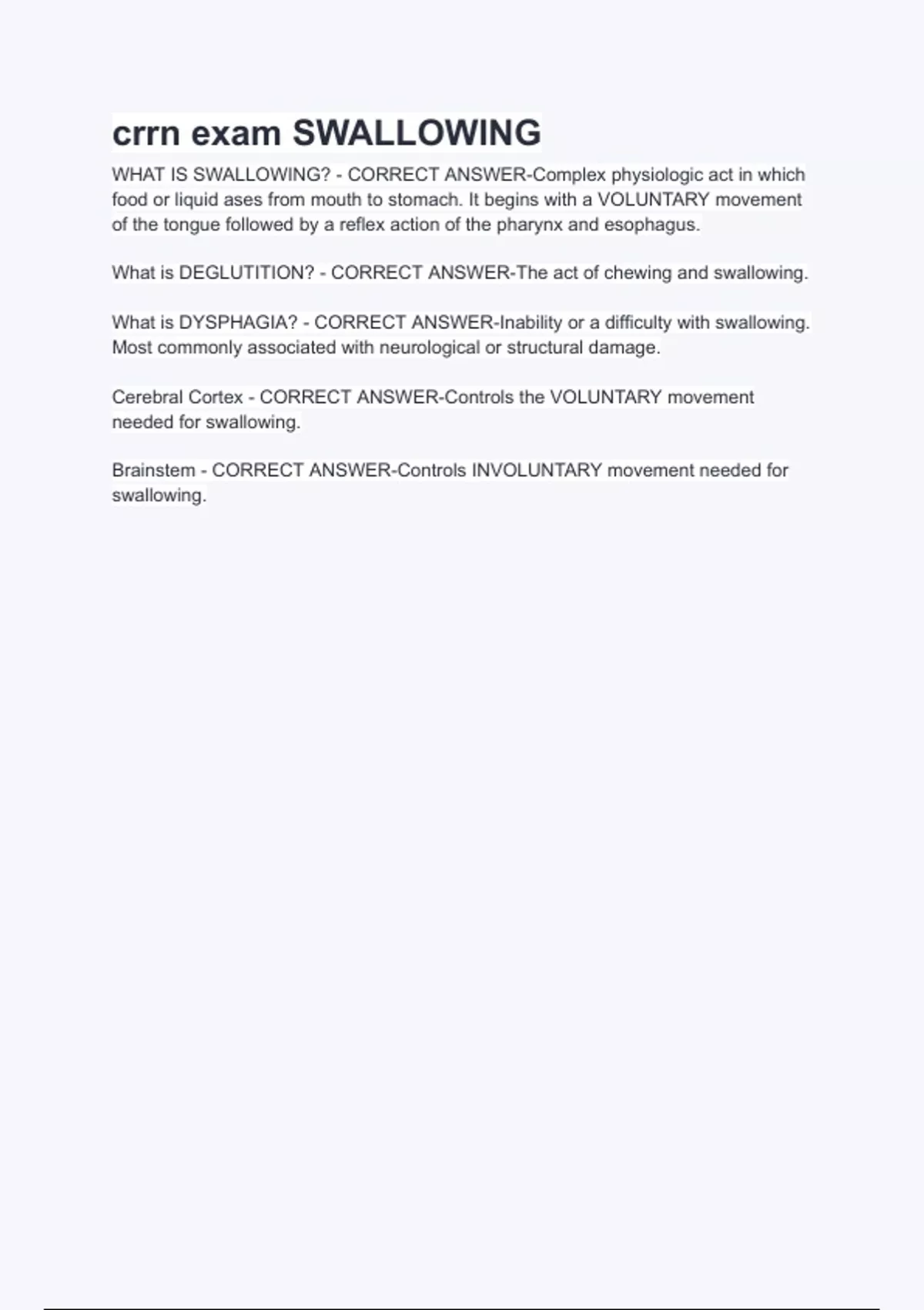 crrn exam SWALLOWING