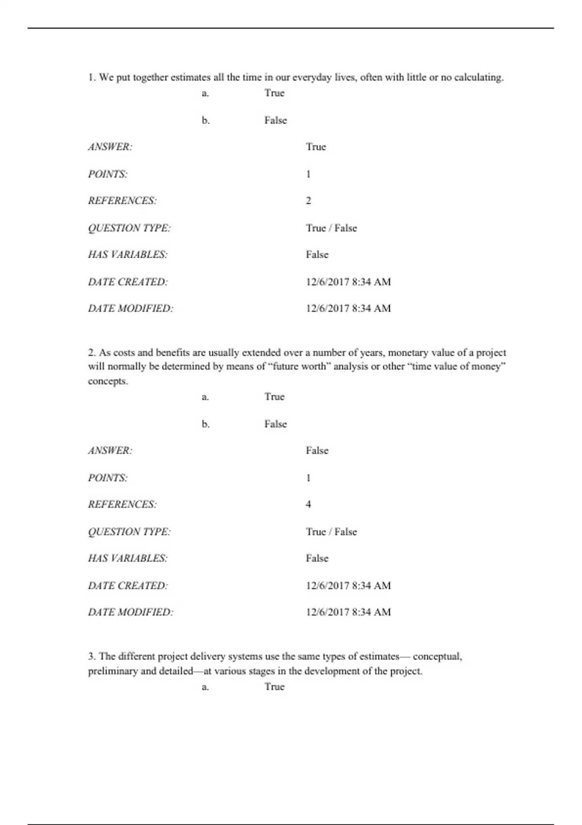 3. The different project delivery systems use the same types of estimates— conceptual,