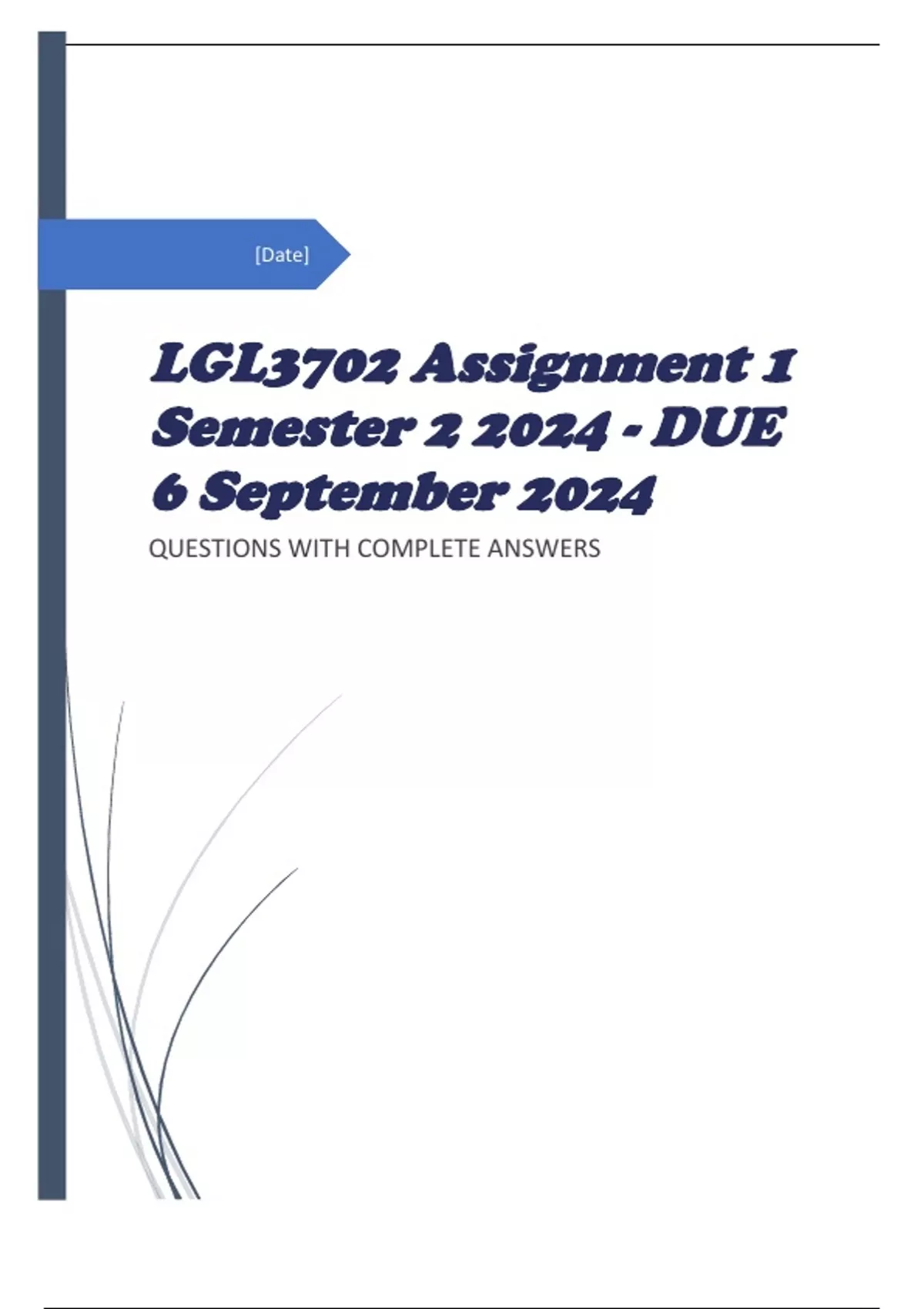 QUESTIONS AND ANSWERS LGL3702 Assignment 1 Semester 2 2024 - DUE 6 September 2024