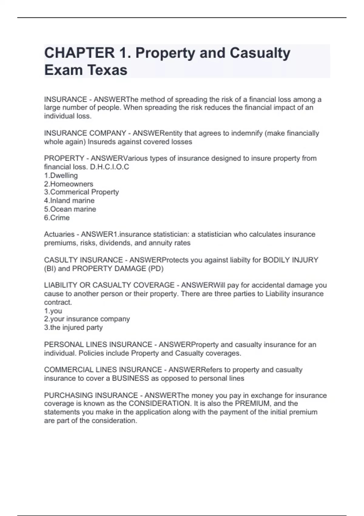 CHAPTER 1. Property and Casualty Exam Texas.Test 2024 with exams and solutions