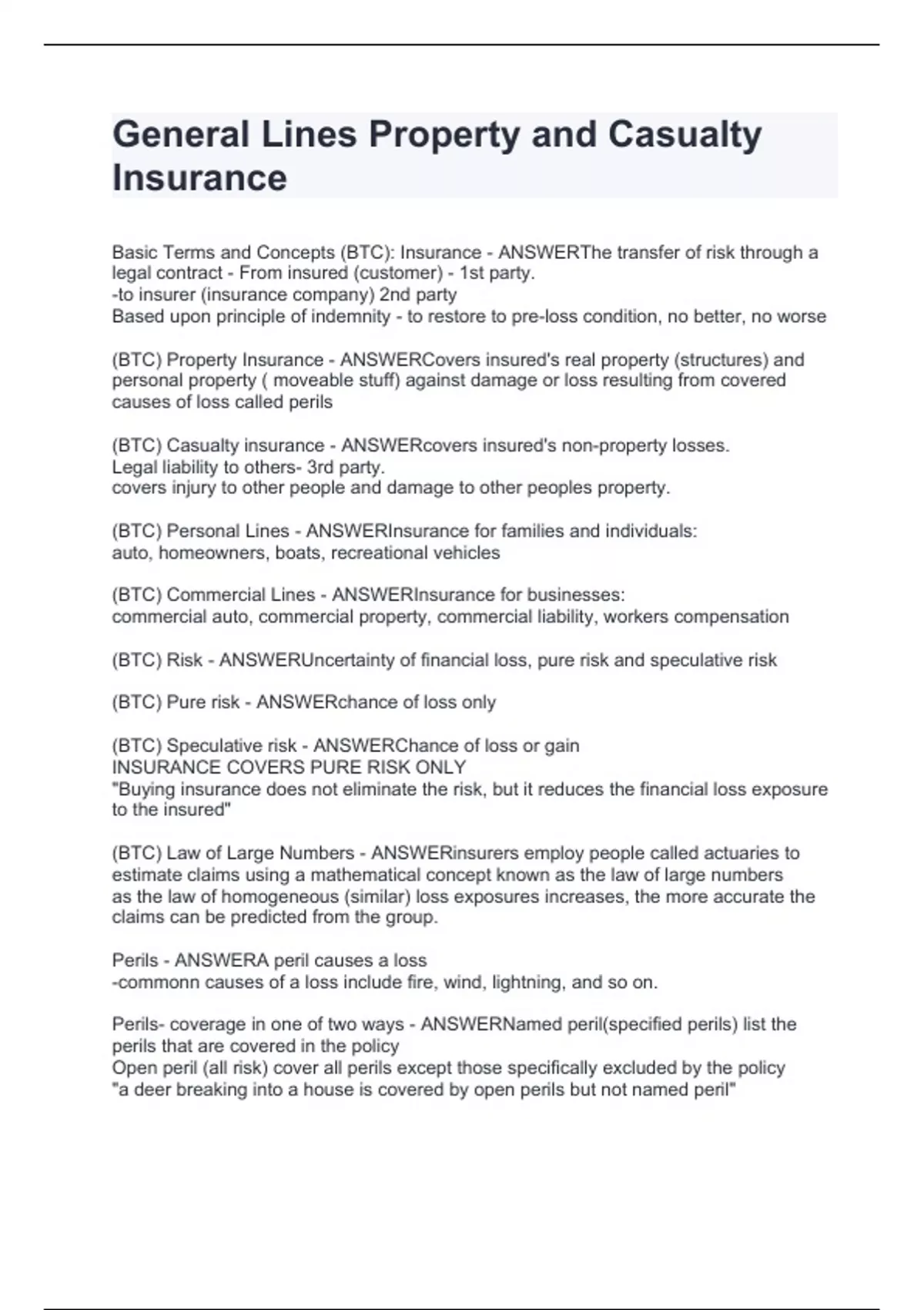 General Lines Property and Casualty Insurance.Interview with answers 2024