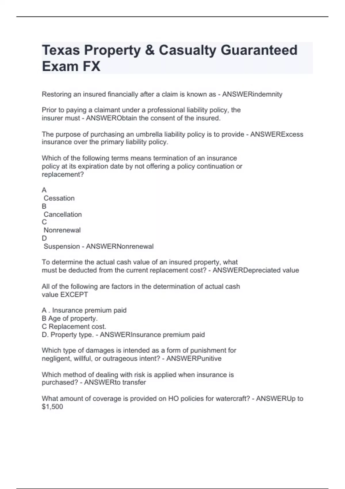 Texas Property & Casualty Guaranteed Exam FX.Full practice test all solved