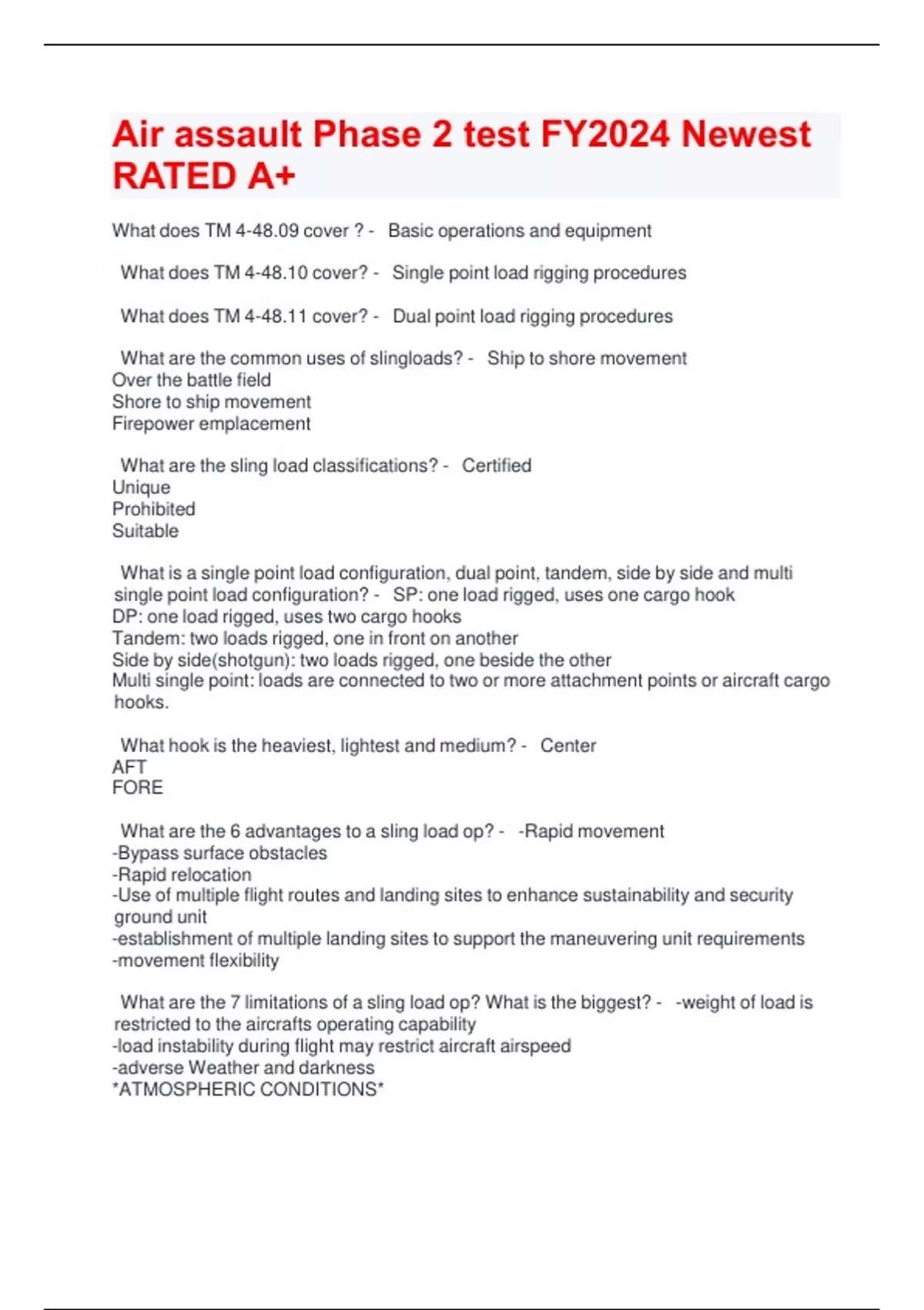 Air assault Phase 2 test FY2024 Newest RATED A+