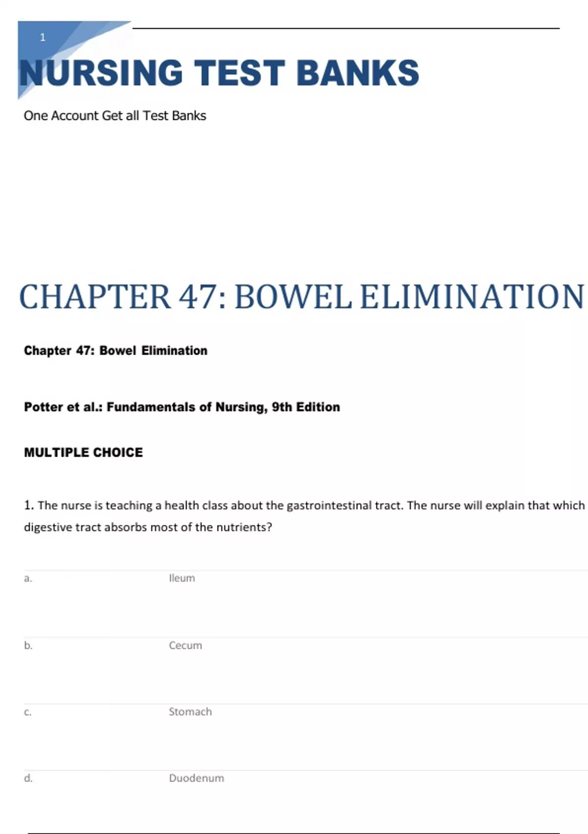 Exam Chabowel chapter 47 elimination Exam Chabowel chapter 47 elimination Exam Chabowel chapter 47 elimination