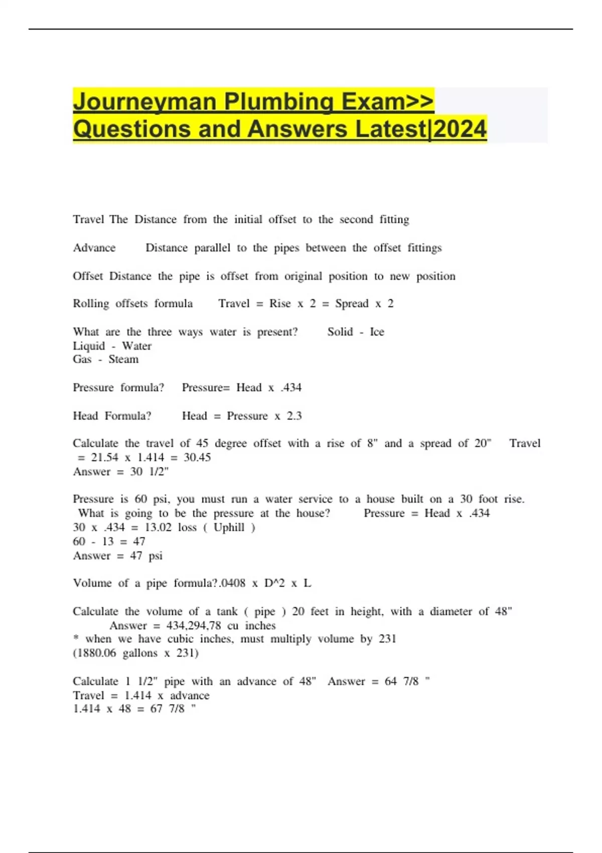 Journeyman Plumbing Exam>> Questions and Answers Latest|2024