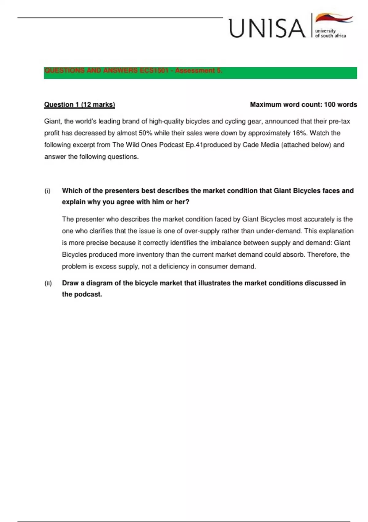 (ii) Draw a diagram of the bicycle market that illustrates the market conditions discussed in
