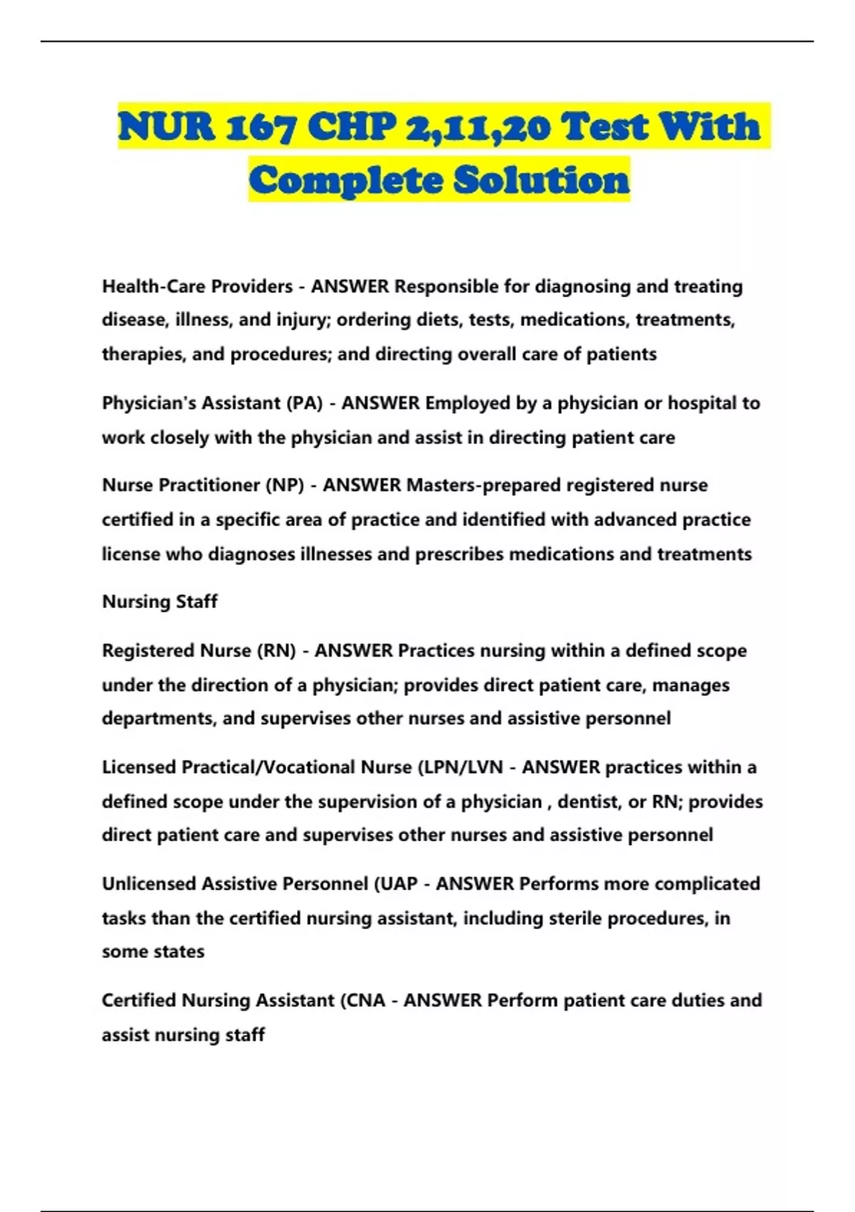 nur 167 chp 21120 test with complete solution