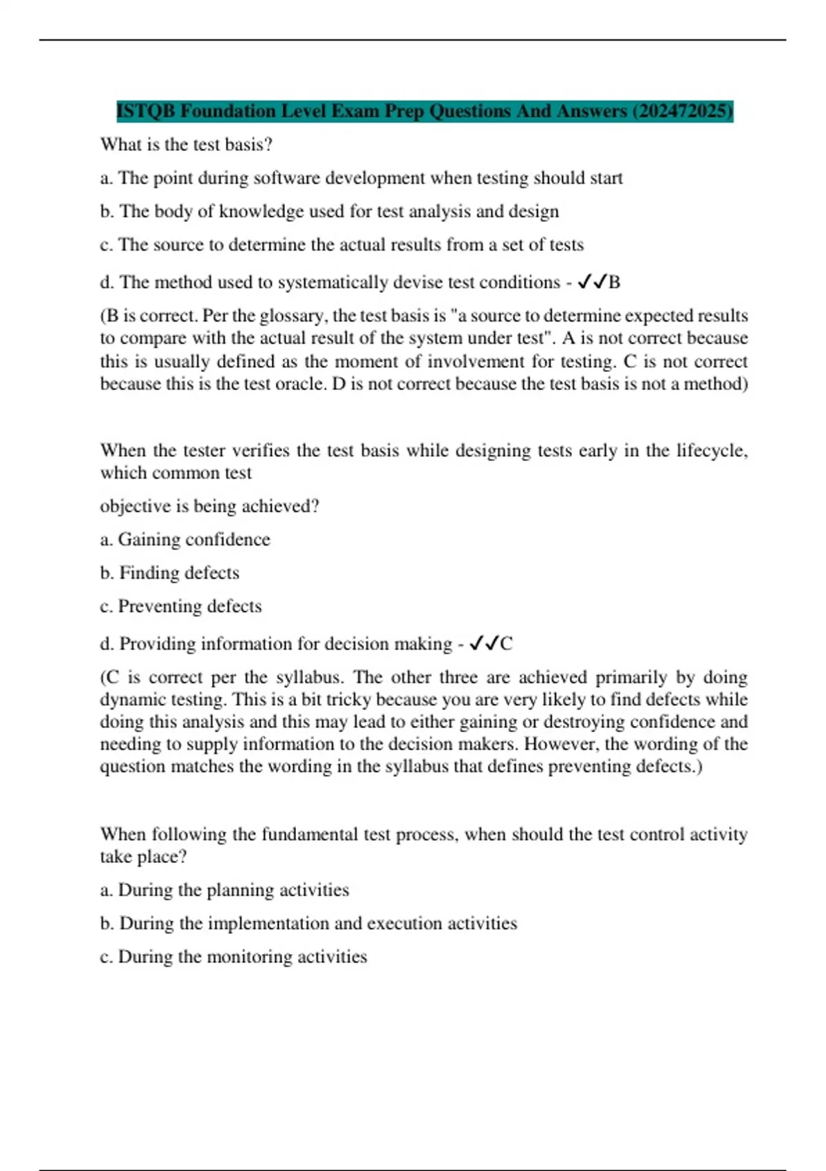 ISTQB Foundation Level Exam Prep Questions And Answers ()