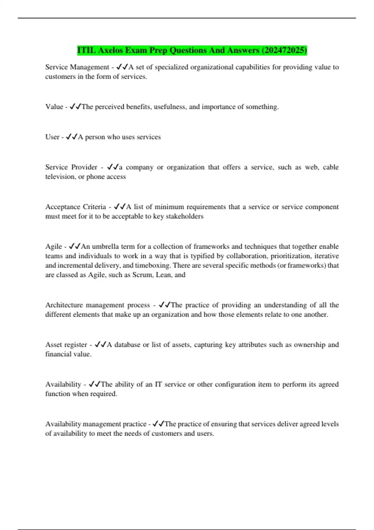 ITIL Axelos Exam Prep Questions And Answers ()