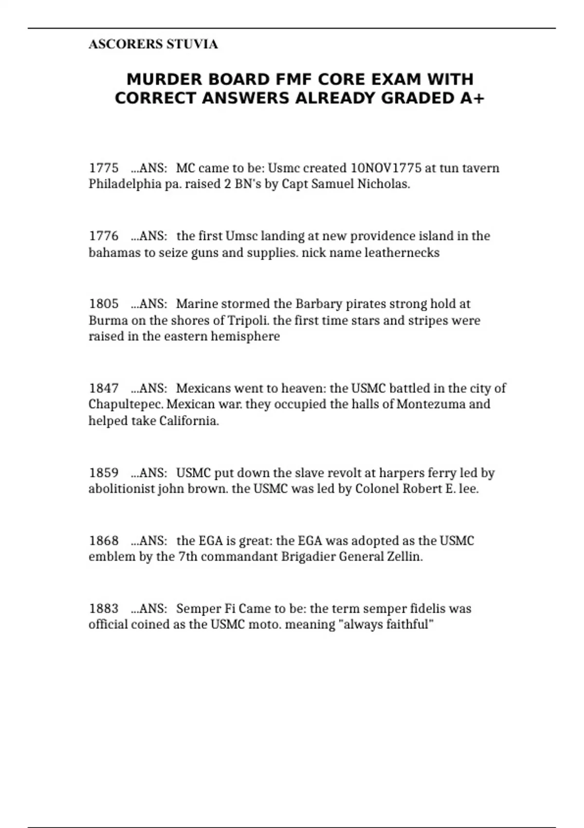 murder board fmf core exam with correct answers
