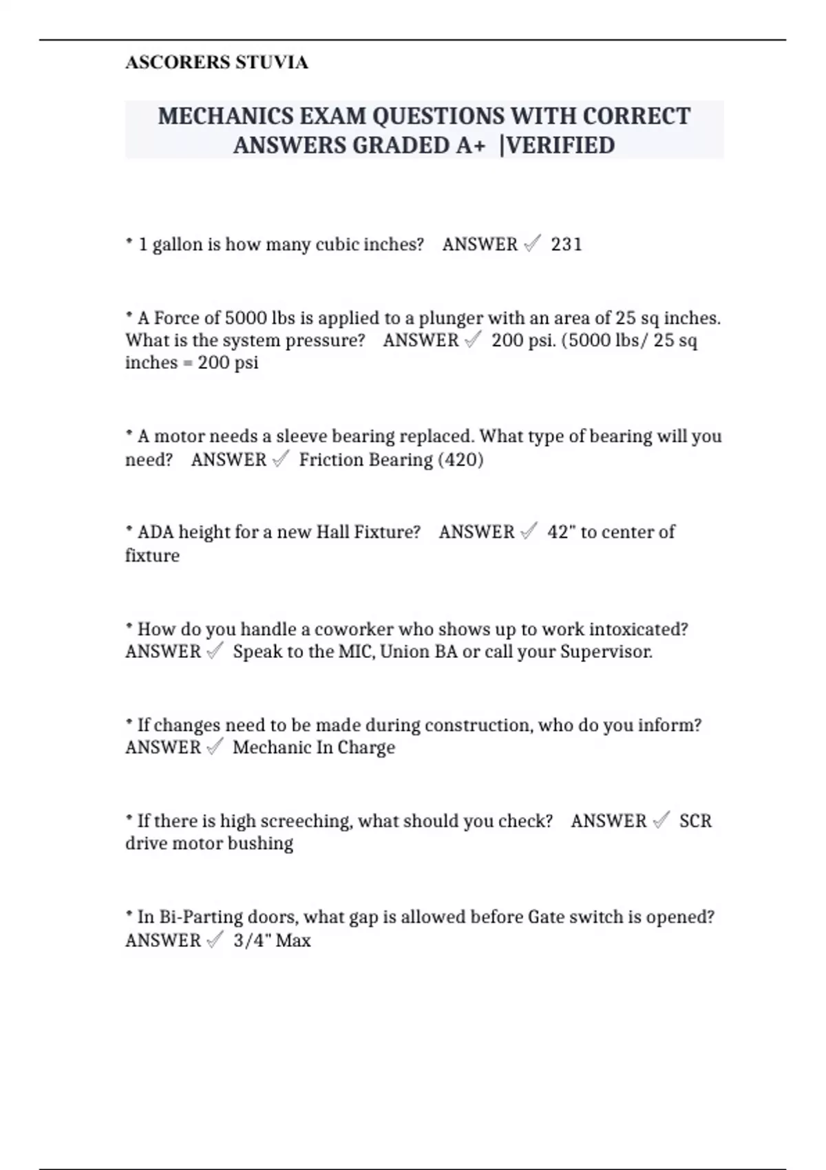 MECHANICS EXAM QUESTIONS WITH CORRECT ANSWERS GRADED A+ |VERIFIED