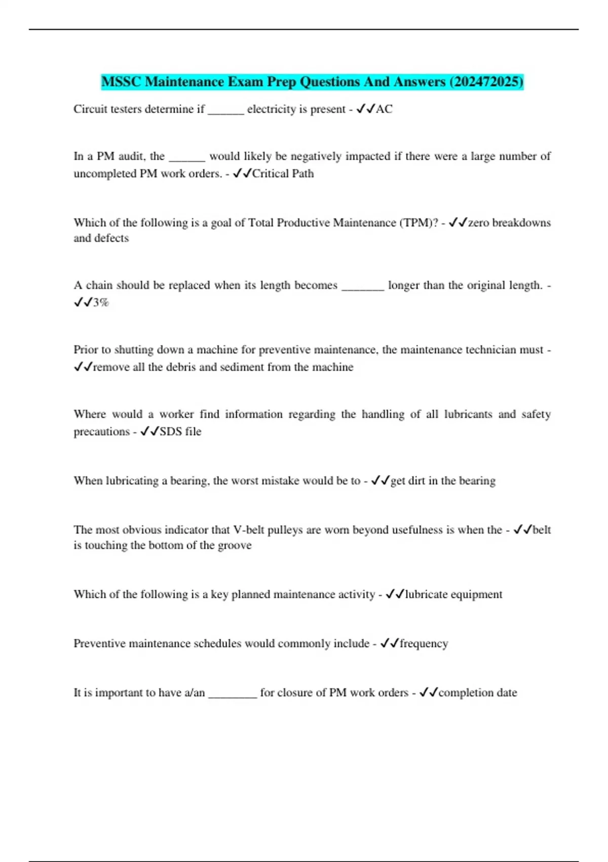MSSC Maintenance Exam Prep Questions And Answers ()
