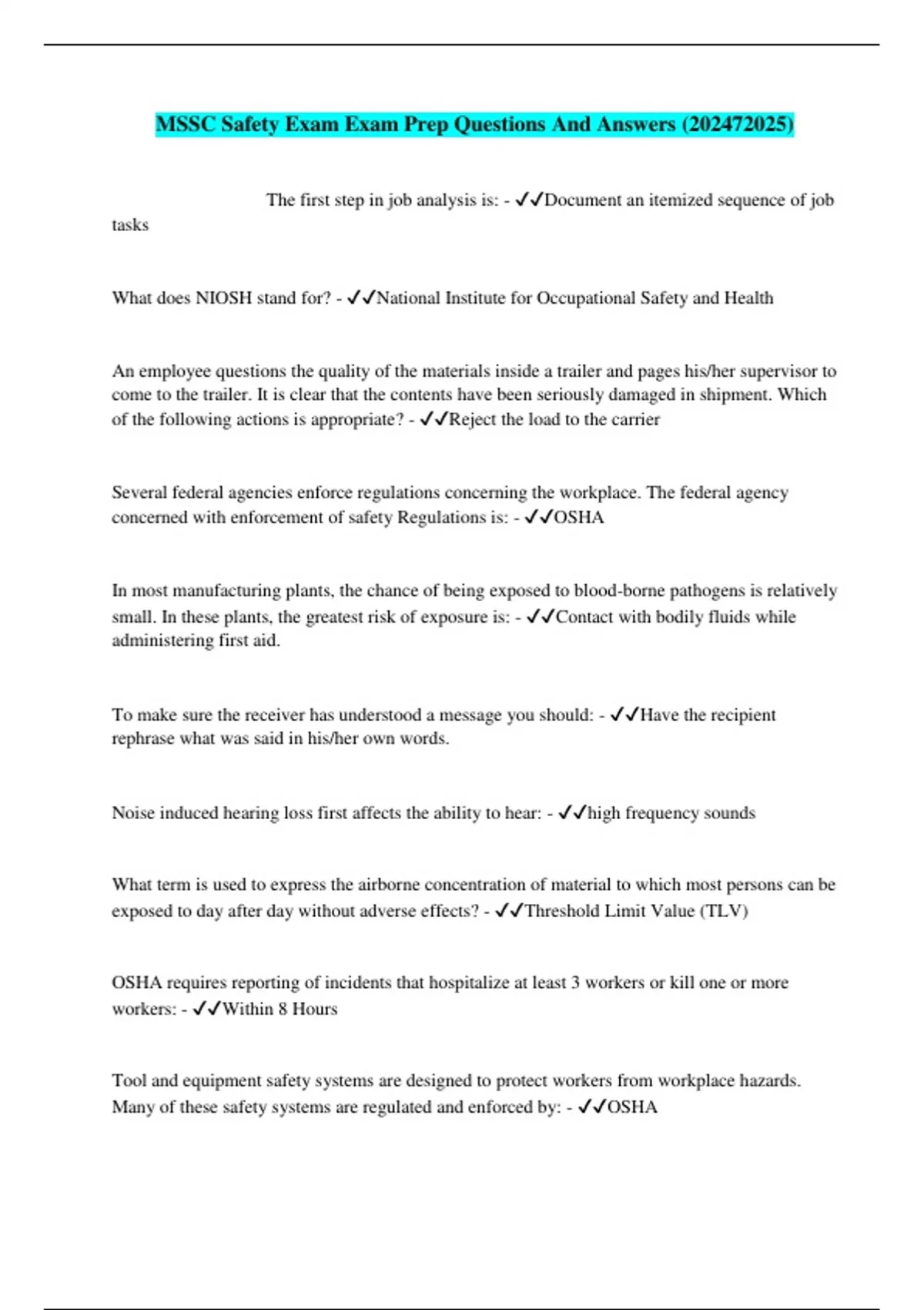 MSSC Safety Exam Exam Prep Questions And Answers ()