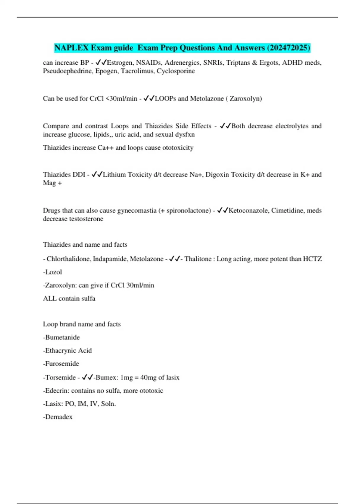 NAPLEX Exam guide Exam Prep Questions And Answers ()