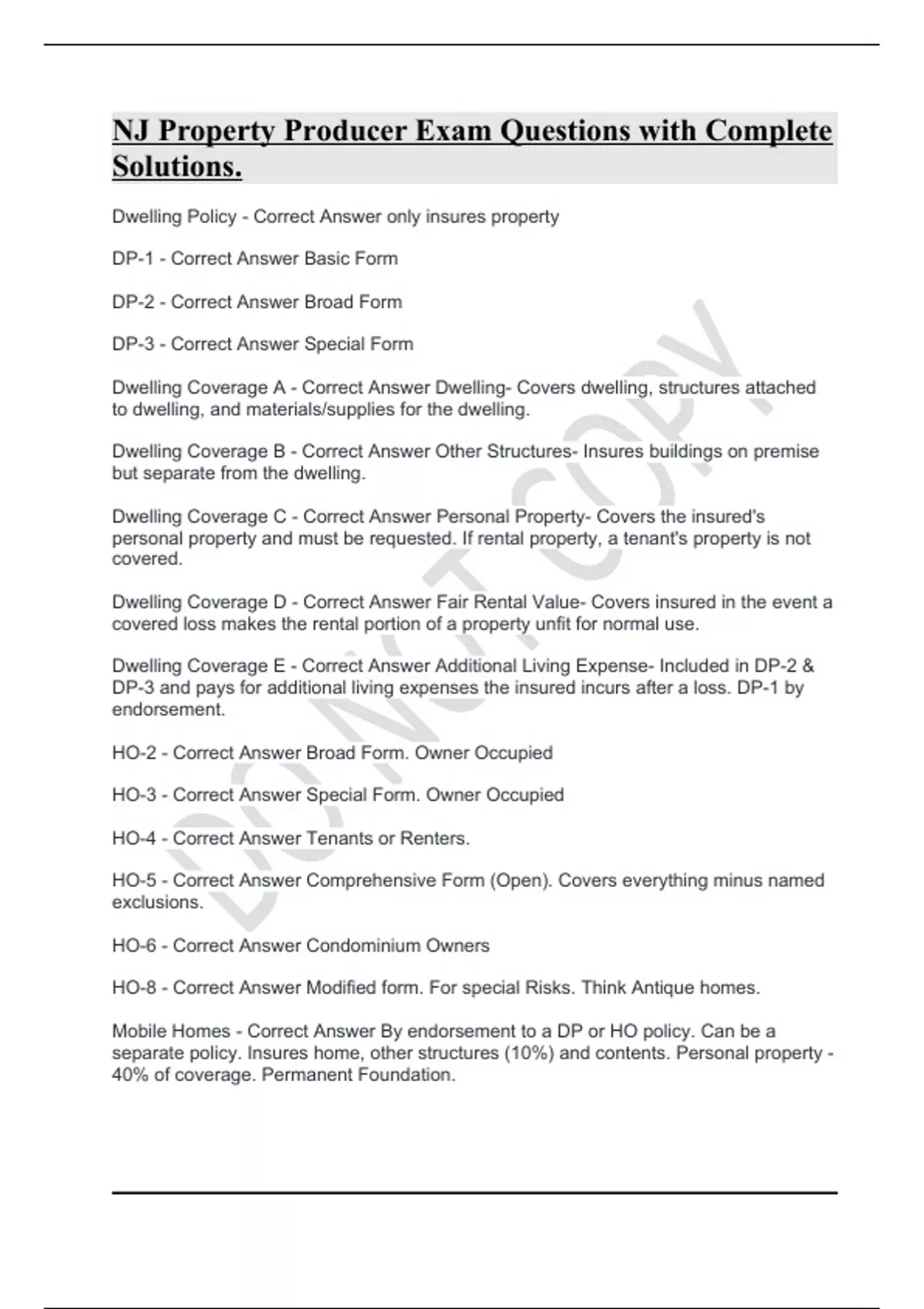 NJ Property Producer Exam Questions with Complete Solutions.NJ Property Producer Exam Questions with Complete Solutions.NJ Property Producer Exam Questions with Complete Solutions.