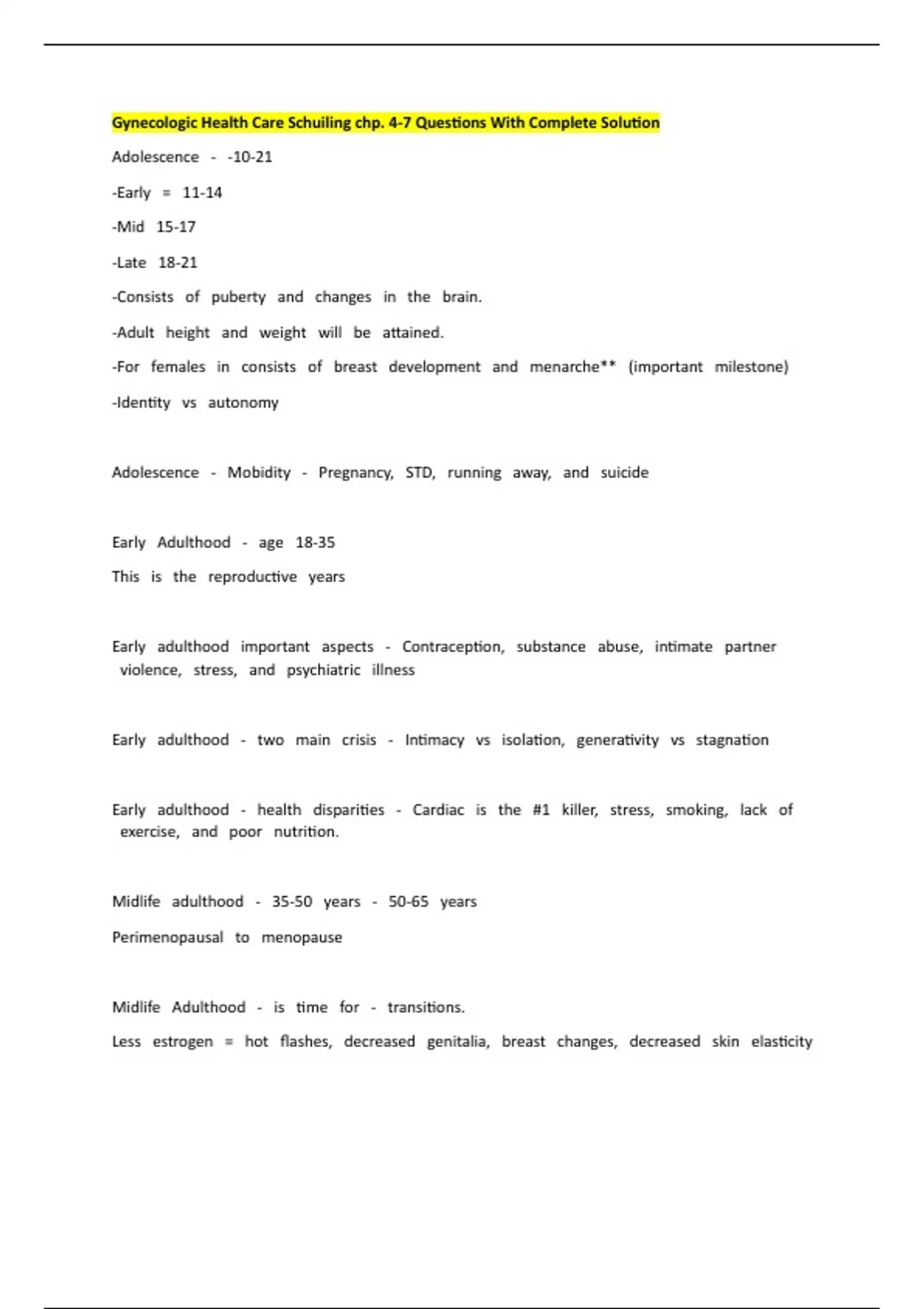 - Gynecologic Health Care Schuiling chp. 4-7