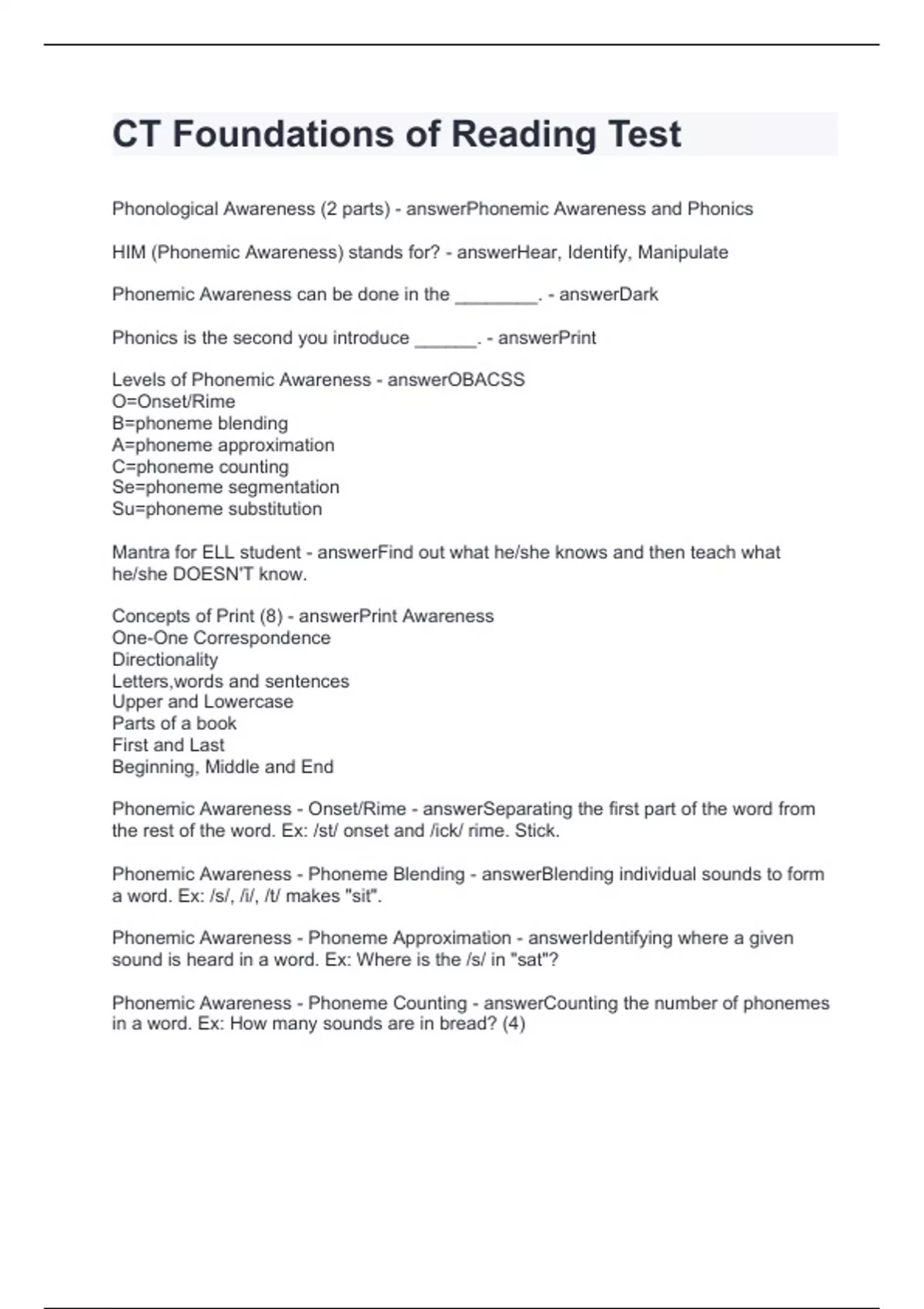 CT Foundations of Reading Test.Test 2024 questions and answers
