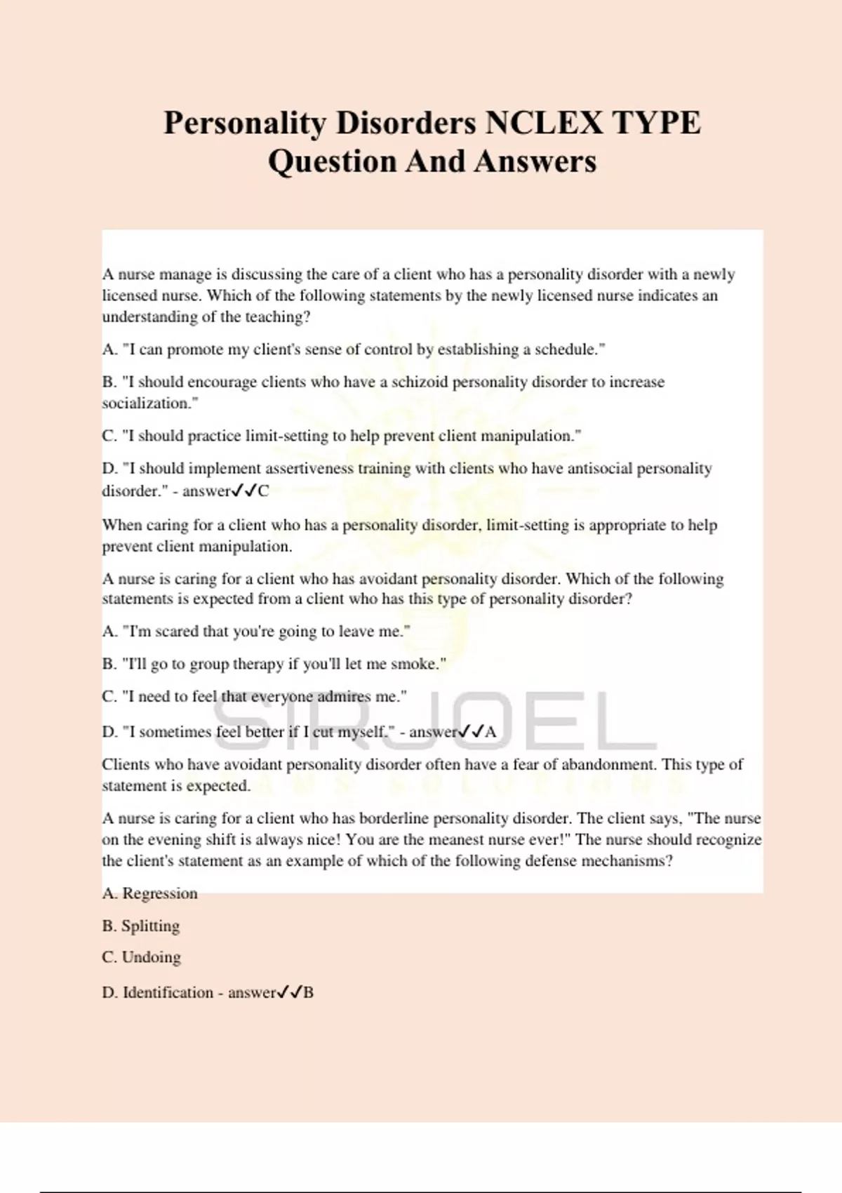 Personality Disorders NCLEX TYPE Question And Answers