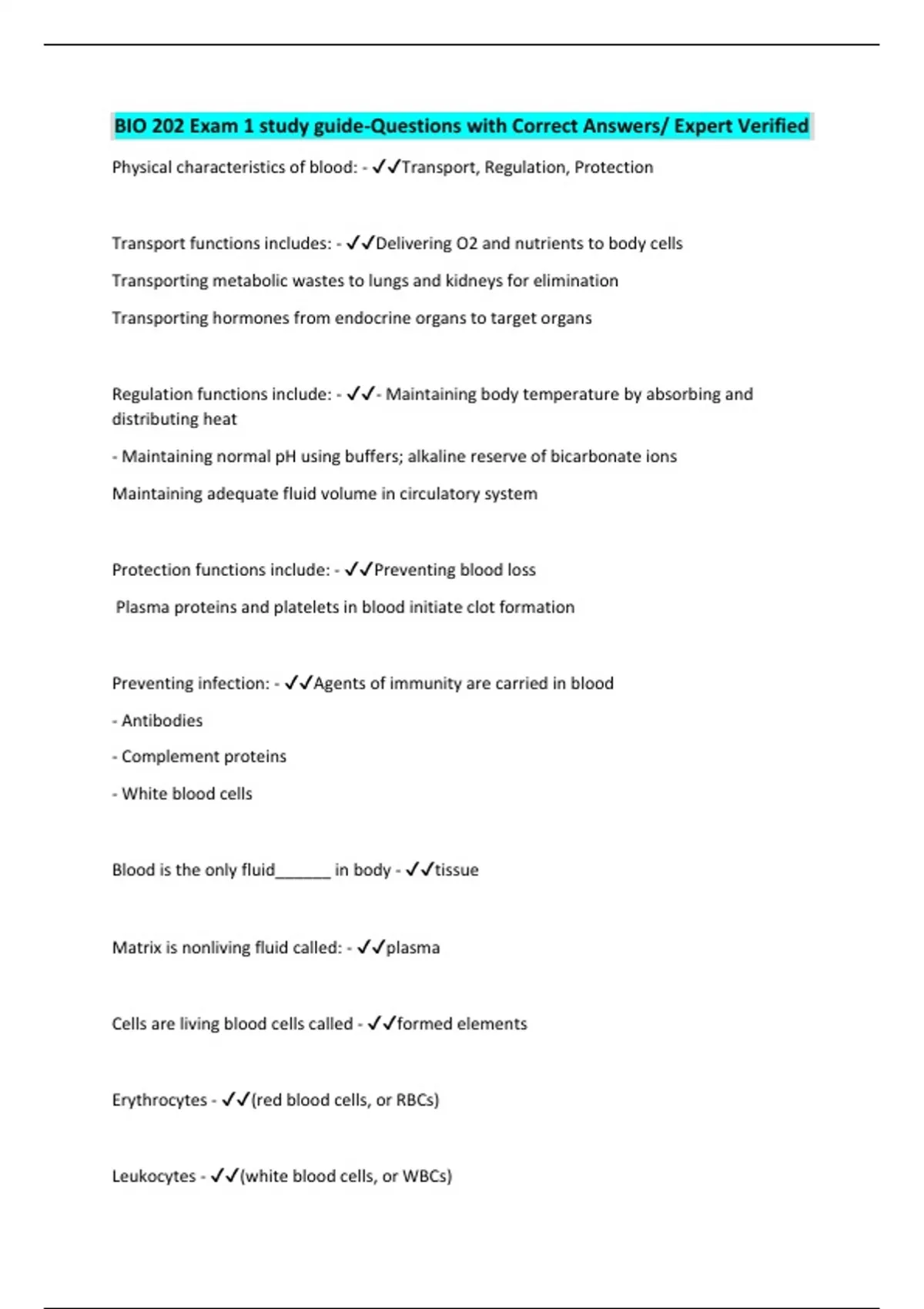 BIO 202 Exam 1 study guide-Questions with Correct Answers/ Expert Verified