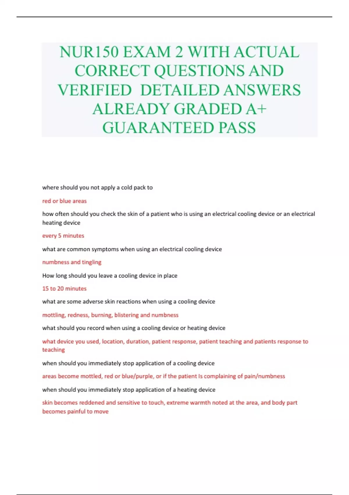 NUR150 EXAM 2 WITH ACTUAL CORRECT QUESTIONS AND VERIFIED DETAILED ANSWERS ALREADY GRADED A+ GUARANTEED PASS