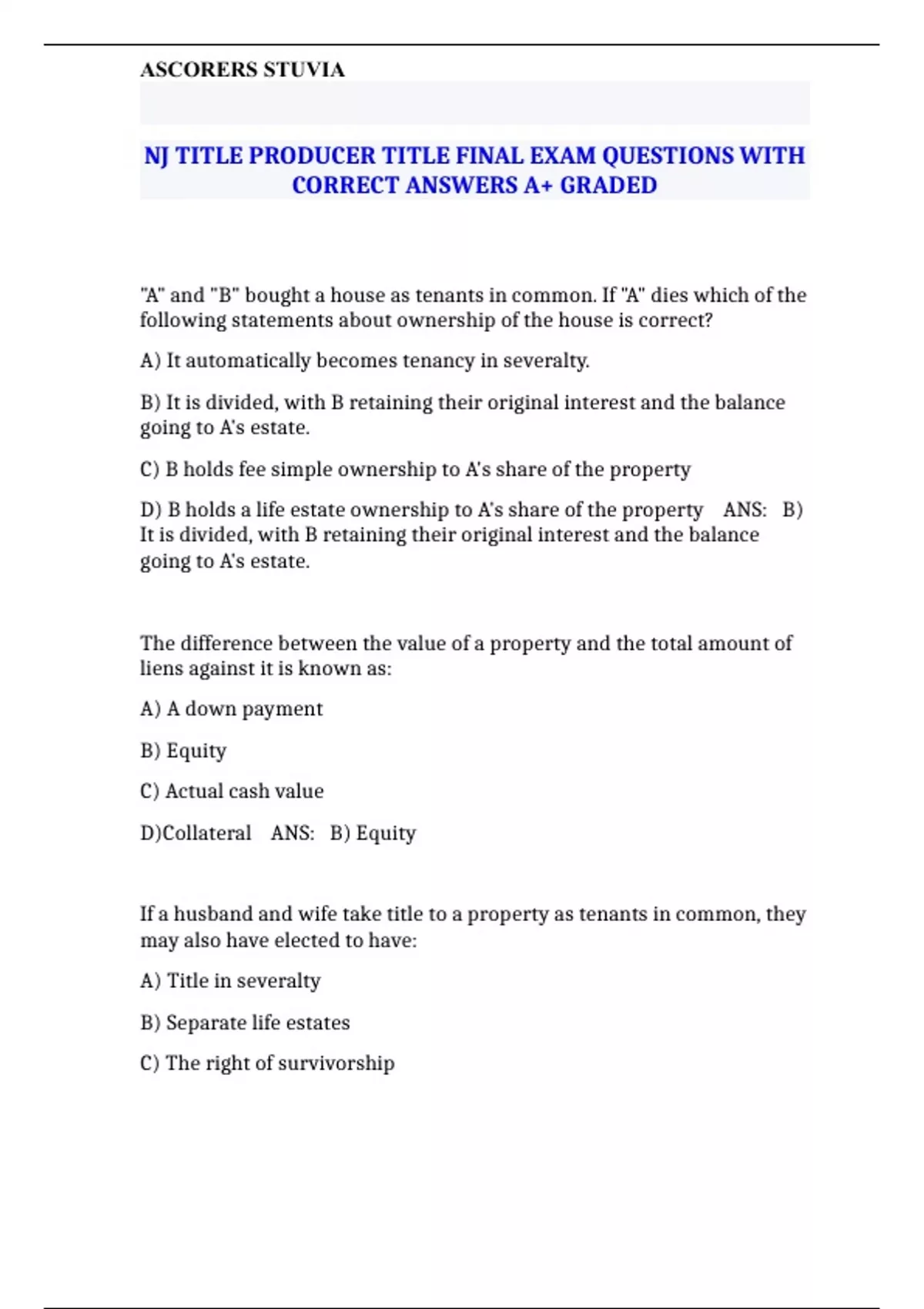 NJ TITLE PRODUCER TITLE FINAL EXAM QUESTIONS WITH CORRECT ANSWERS A+ GRADED