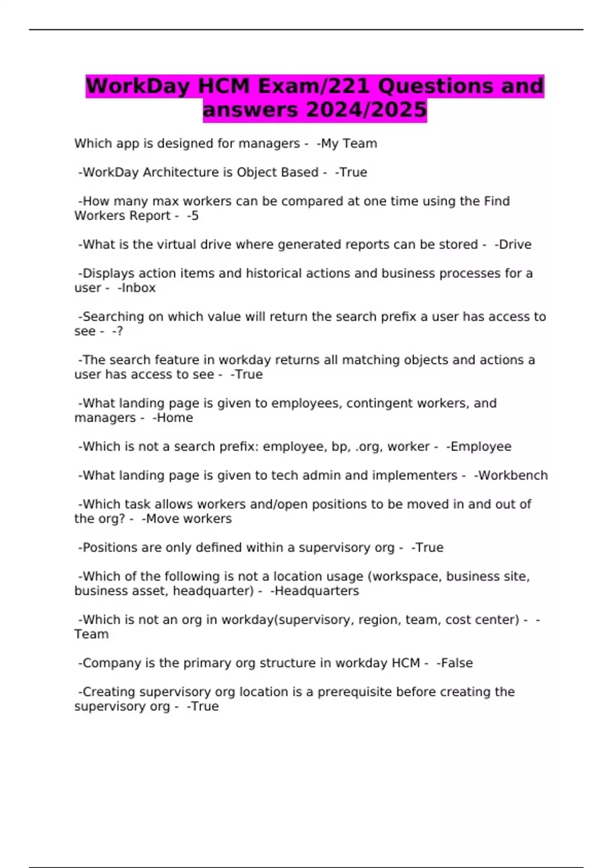 WorkDay HCM Exam/221 Questions and answers 2024/2025