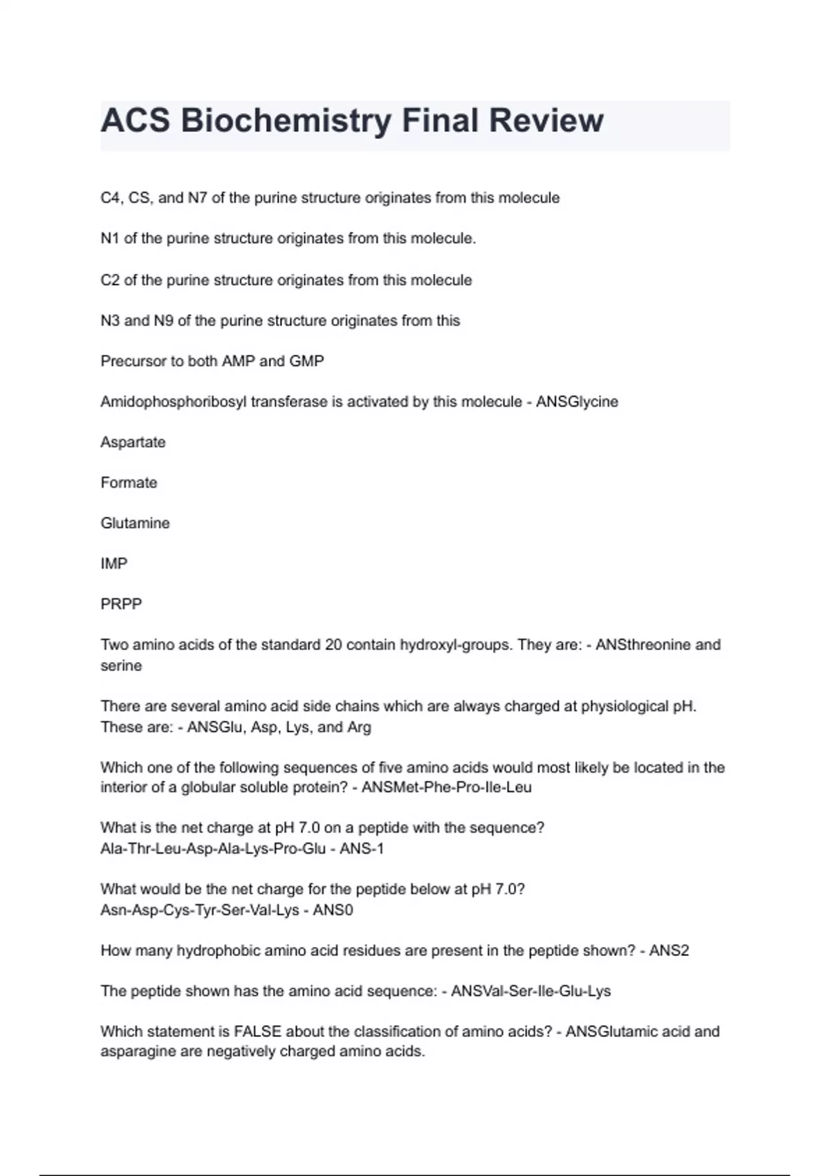 ACS Biochemistry Final Review