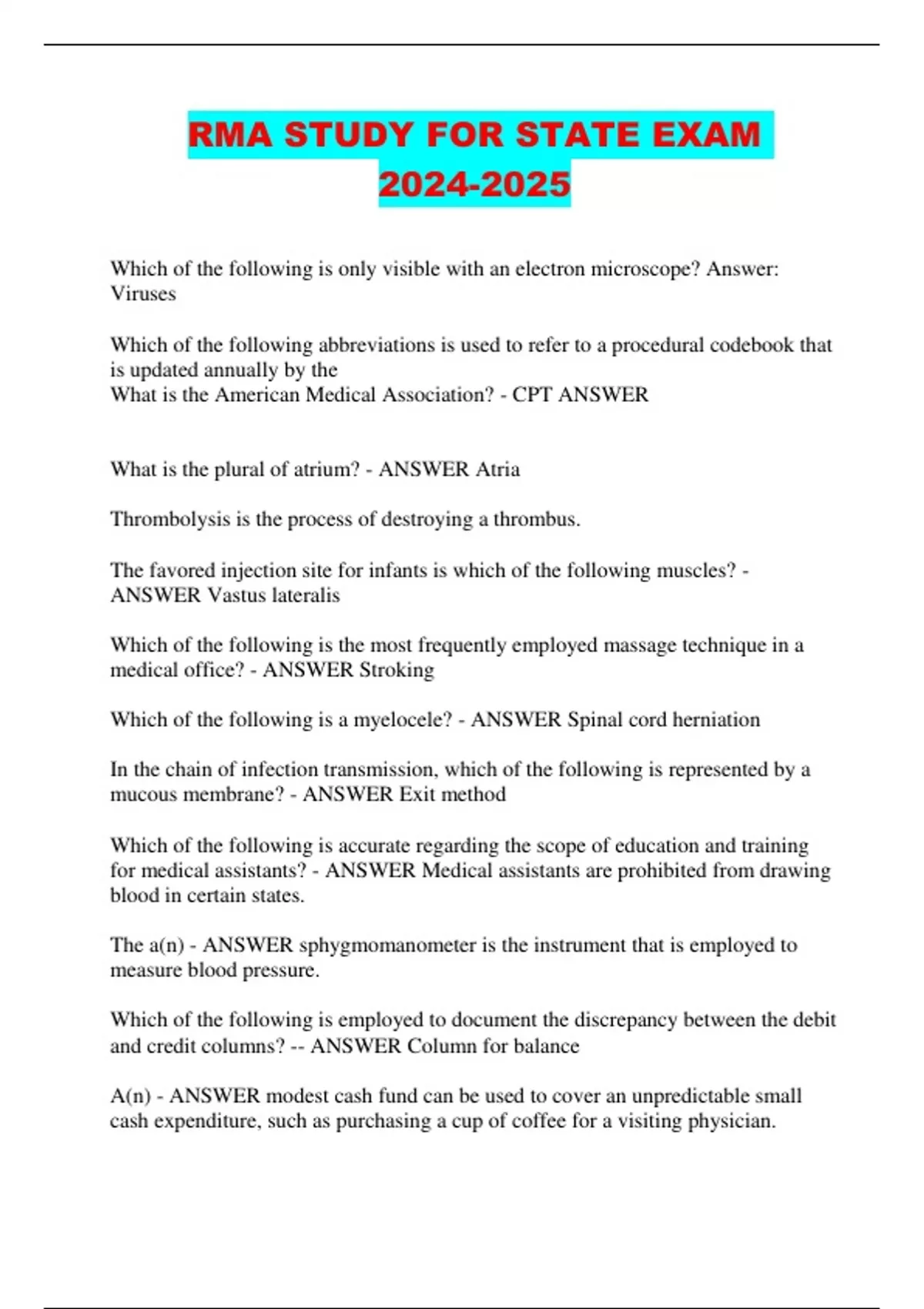 RMA STUDY FOR STATE EXAM