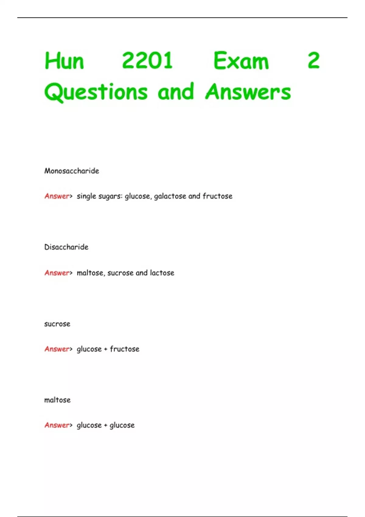 Hun 2201 Exam 2 Questions and Answers