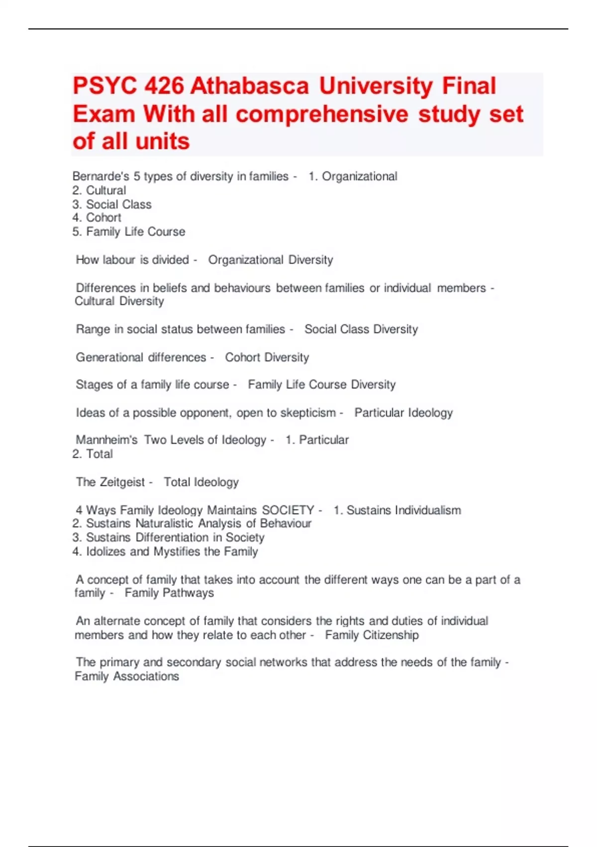 PSYC 426 Athabasca University Final Exam With all comprehensive study set of all units