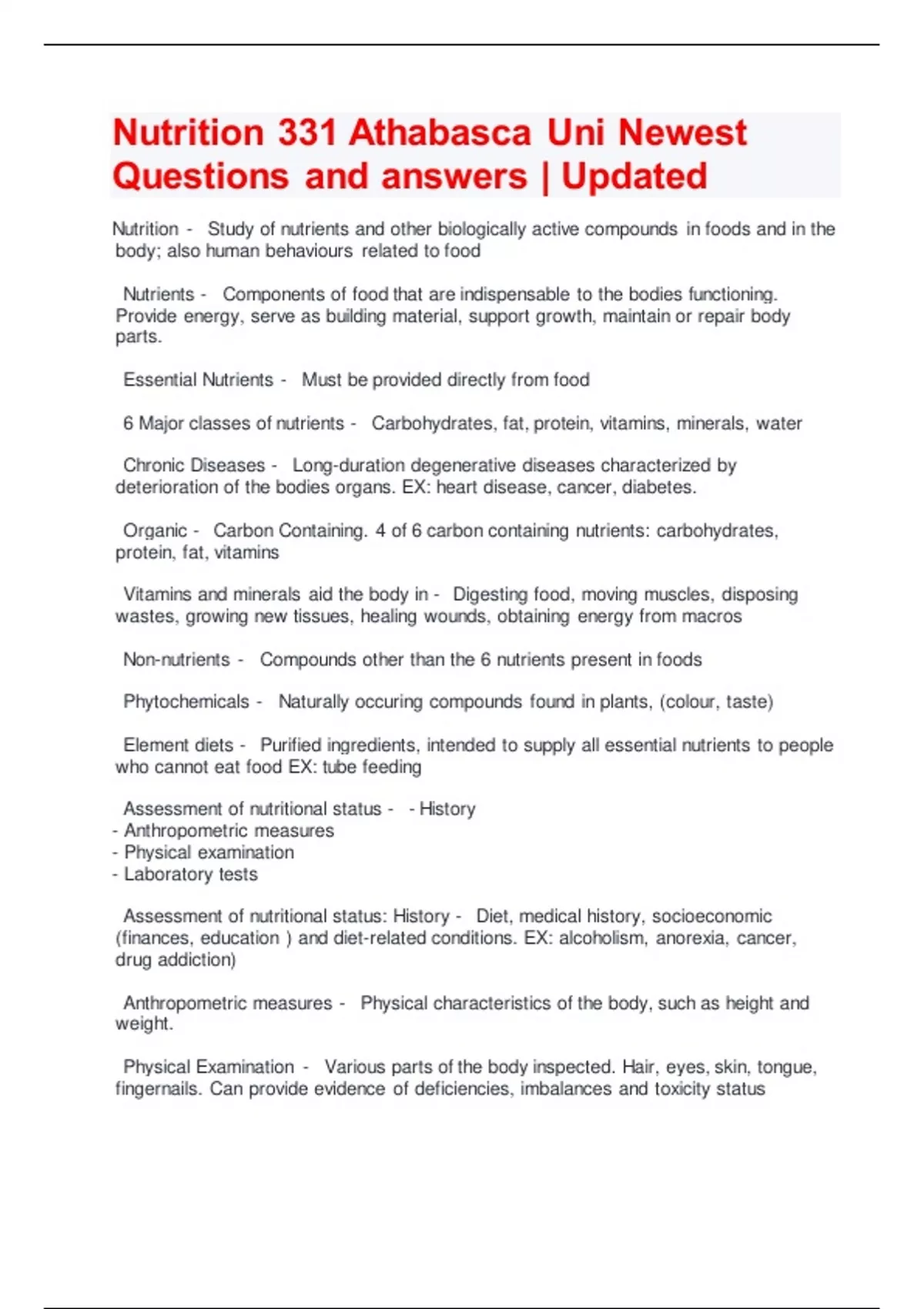 Nutrition 331 Athabasca Uni Newest Questions and answers | Updated