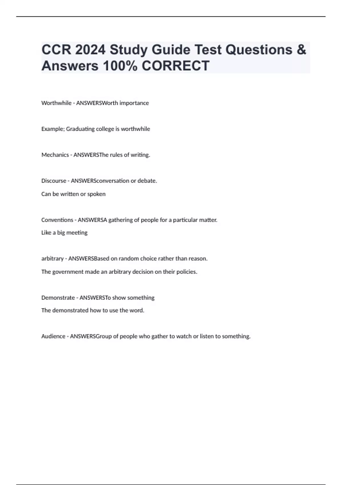 CCR 2024 Study Guide Test Questions & Answers 100% CORRECT