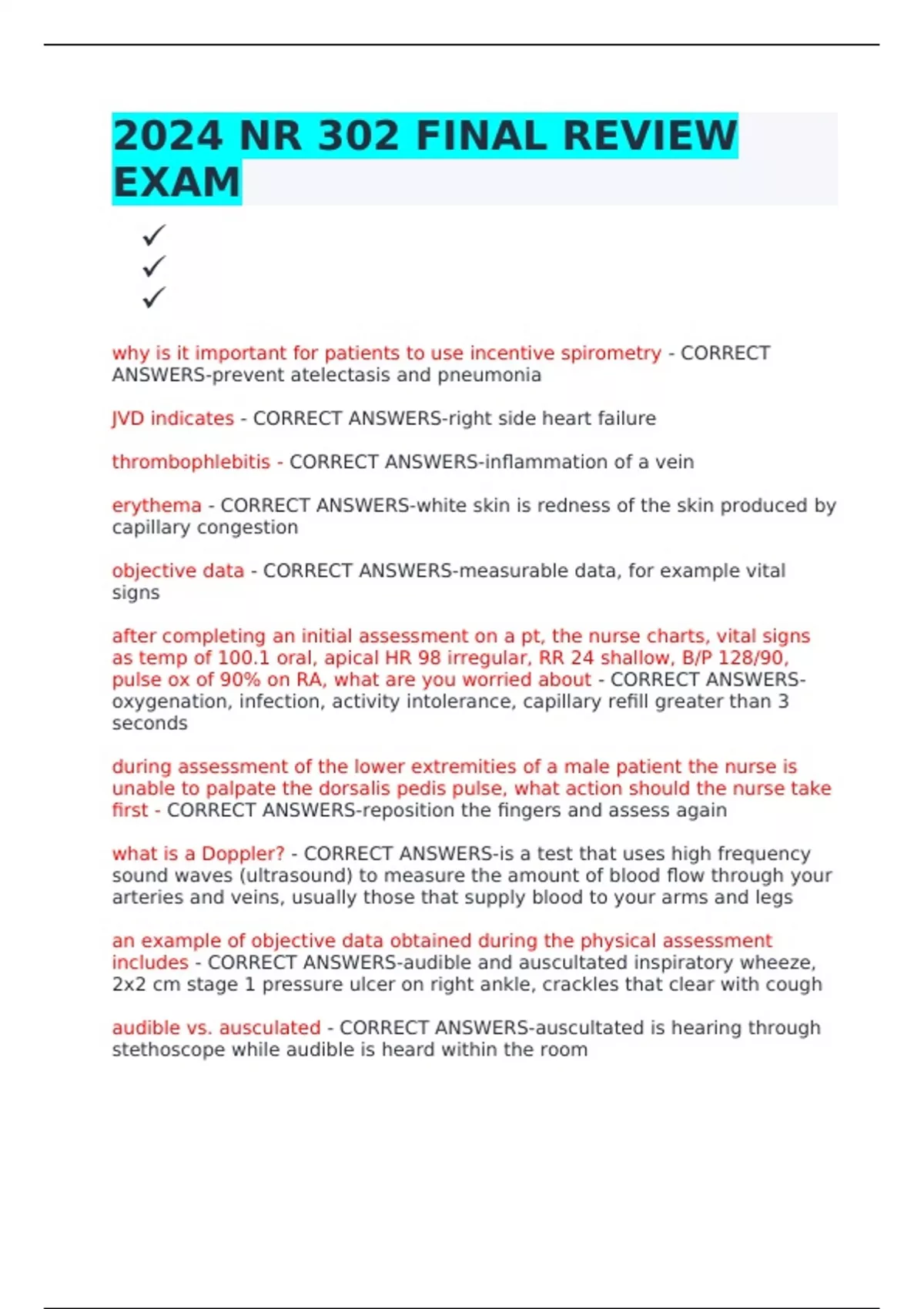 what is a Doppler? - CORRECT ANSWERS-is a test that uses high frequency sound waves (ultrasound) to measure the amount of blood flow through your