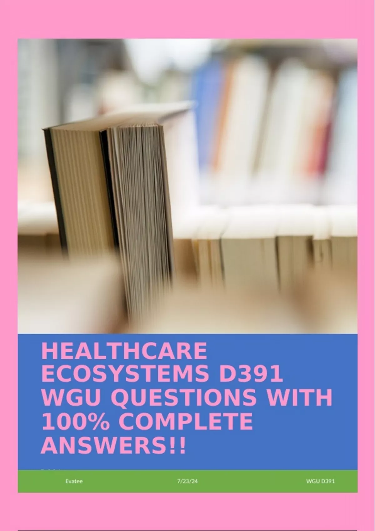 HEALTHCARE ECOSYSTEMS D391 WGU QUESTIONS WITH 100% COMPLETE ANSWERS!!
