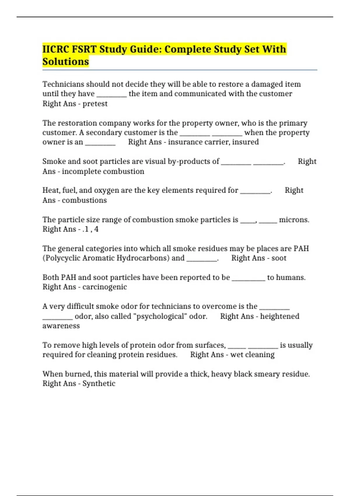 IICRC FSRT Study Guide: Complete Study Set With Solutions