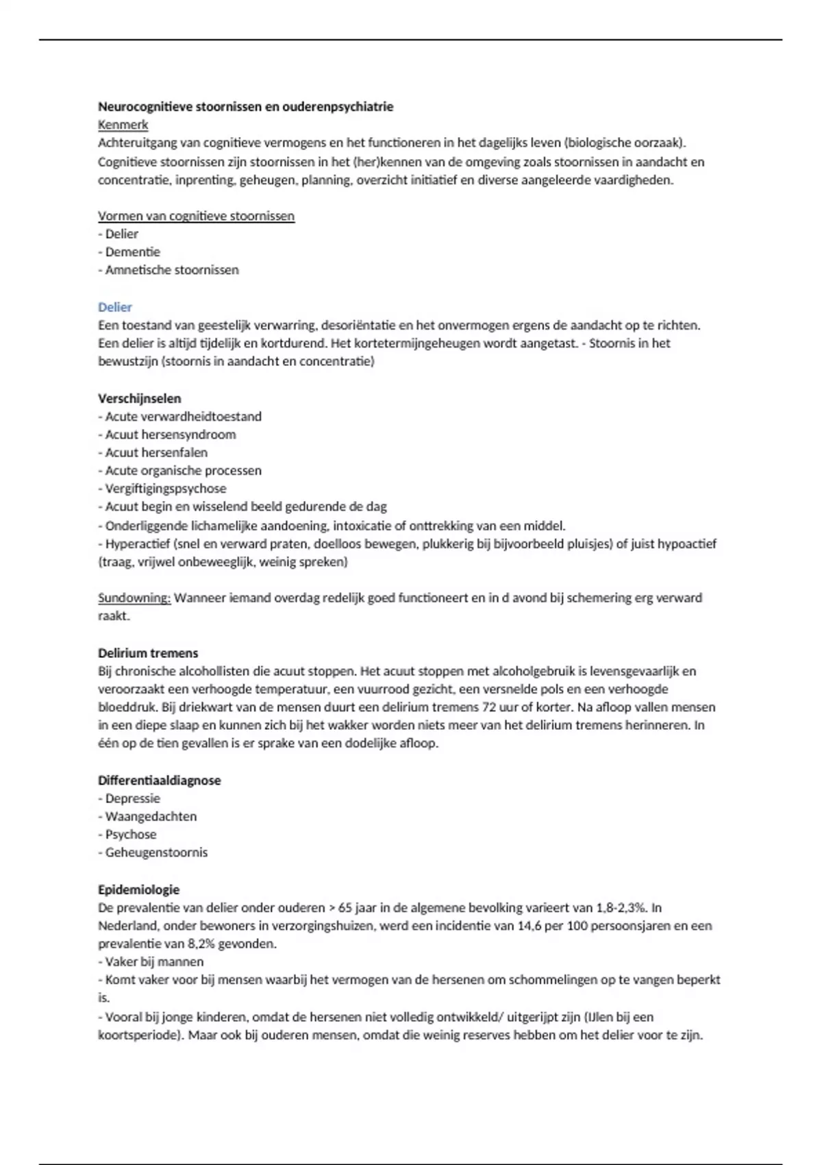 Een delier is altijd tijdelijk en kortdurend. Het kortetermijngeheugen wordt aangetast. - Stoornis in het