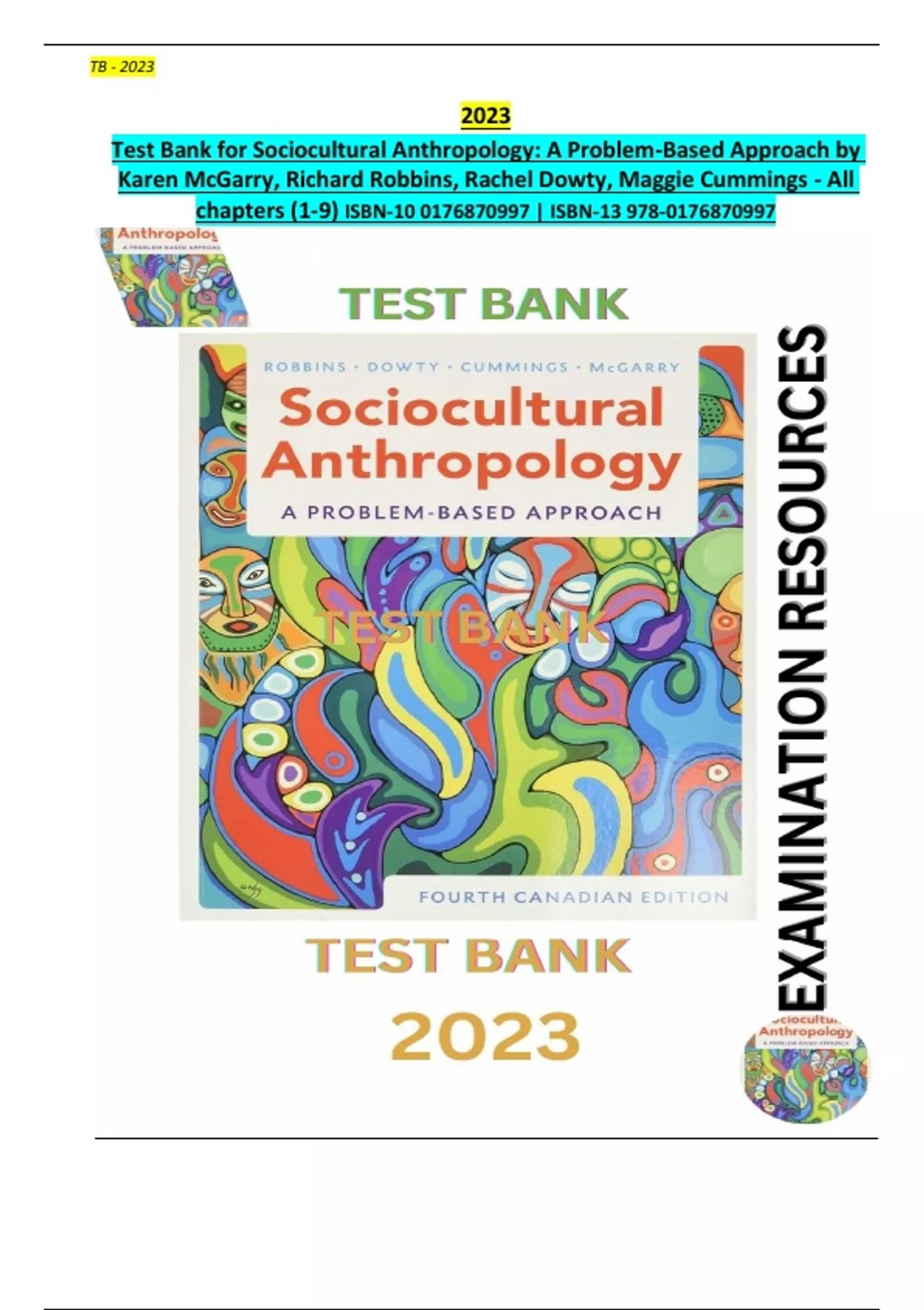 Exam Resources - TB for Sociocultural Anthropology: A Problem-Based Approach 4th Canadian Edition. Latest Version. All chapters (1-9) Included.
