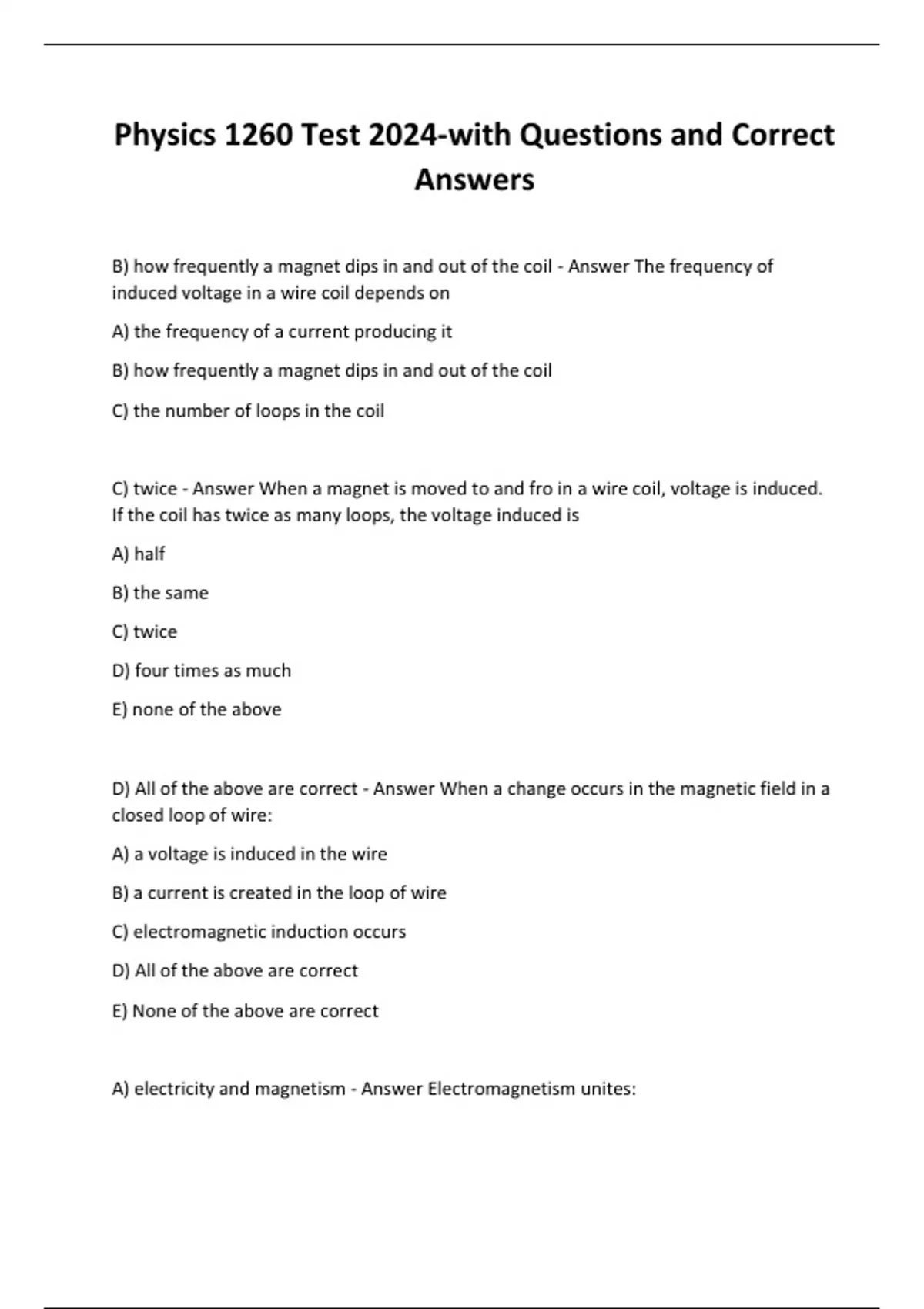 Physics 1260 Test 2024-with Questions and Correct Answers
