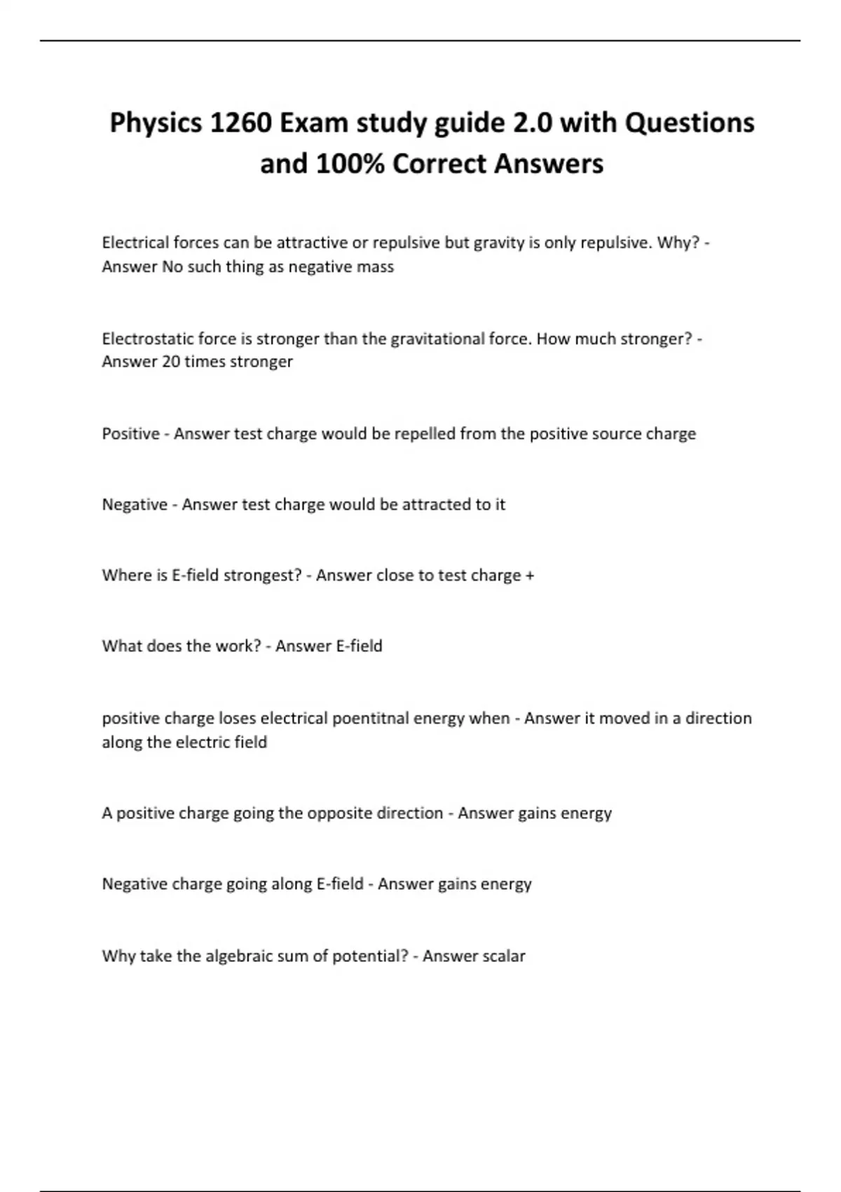 Physics 1260 Exam study guide 2.0 with Questions and 100% Correct Answers