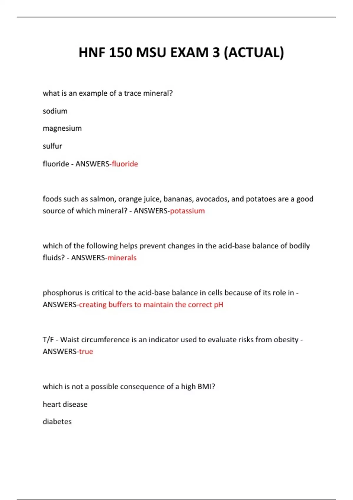 HNF 150 MSU EXAM 3 (ACTUAL) 2024 QUESTIONS AND ANSWERS