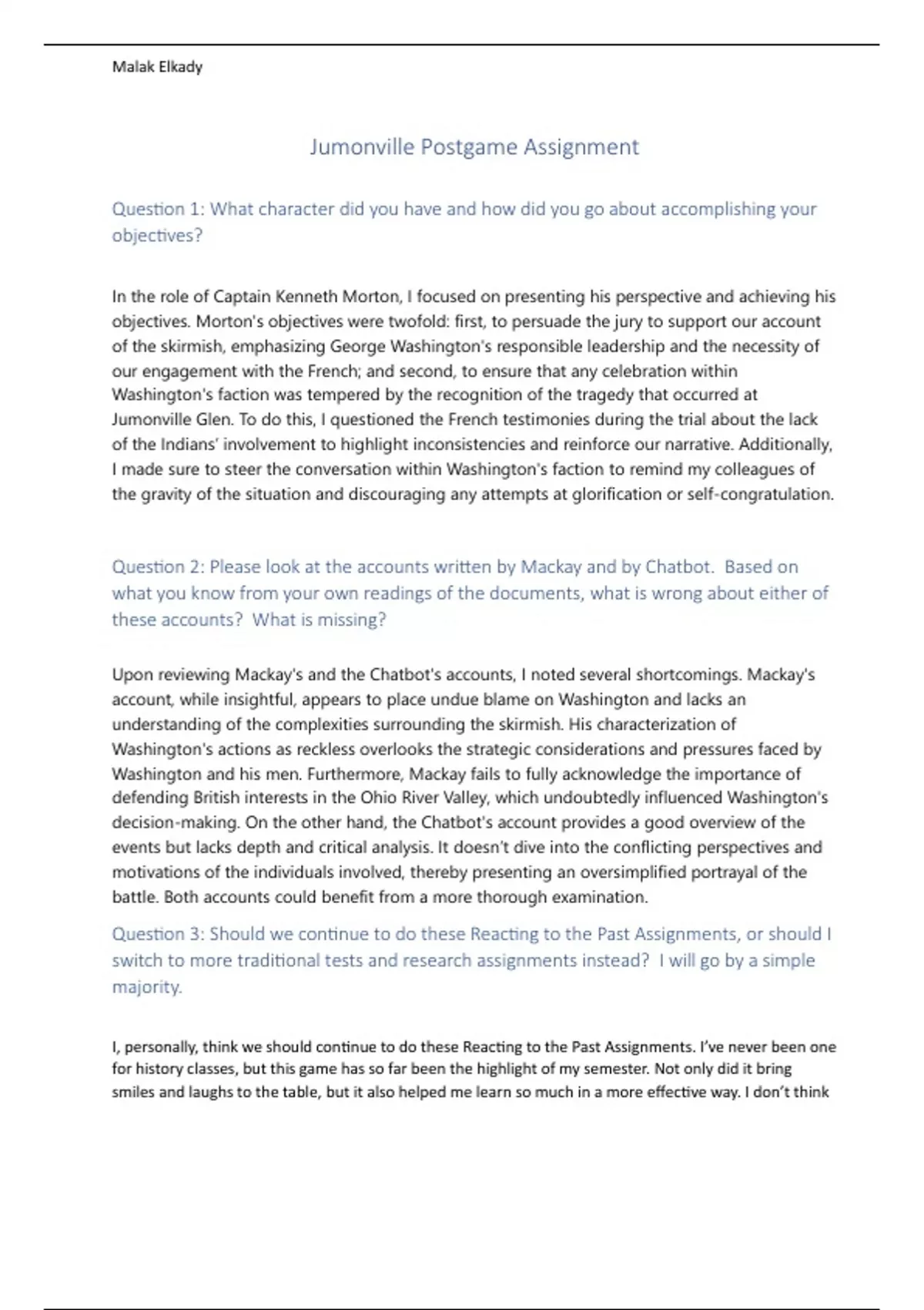 Essay of 2 pages for the course HIST-1301 at Richland College (Jumonville)