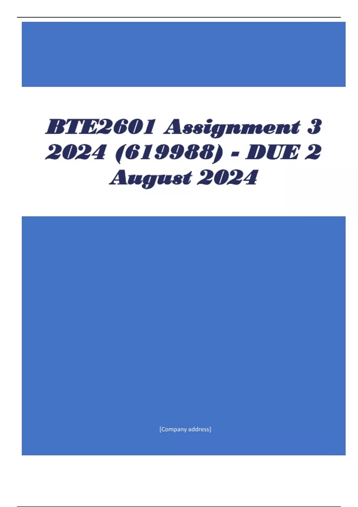, BTE2601 Assignment 3 2024 (619988) - DUE 2 August 2024