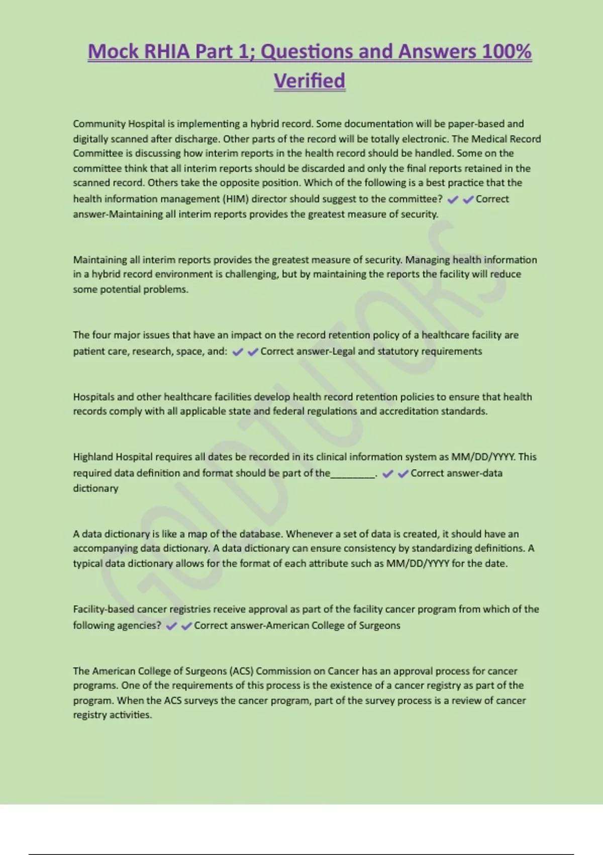 Mock RHIA Part 1; Questions and Answers 100% Verified