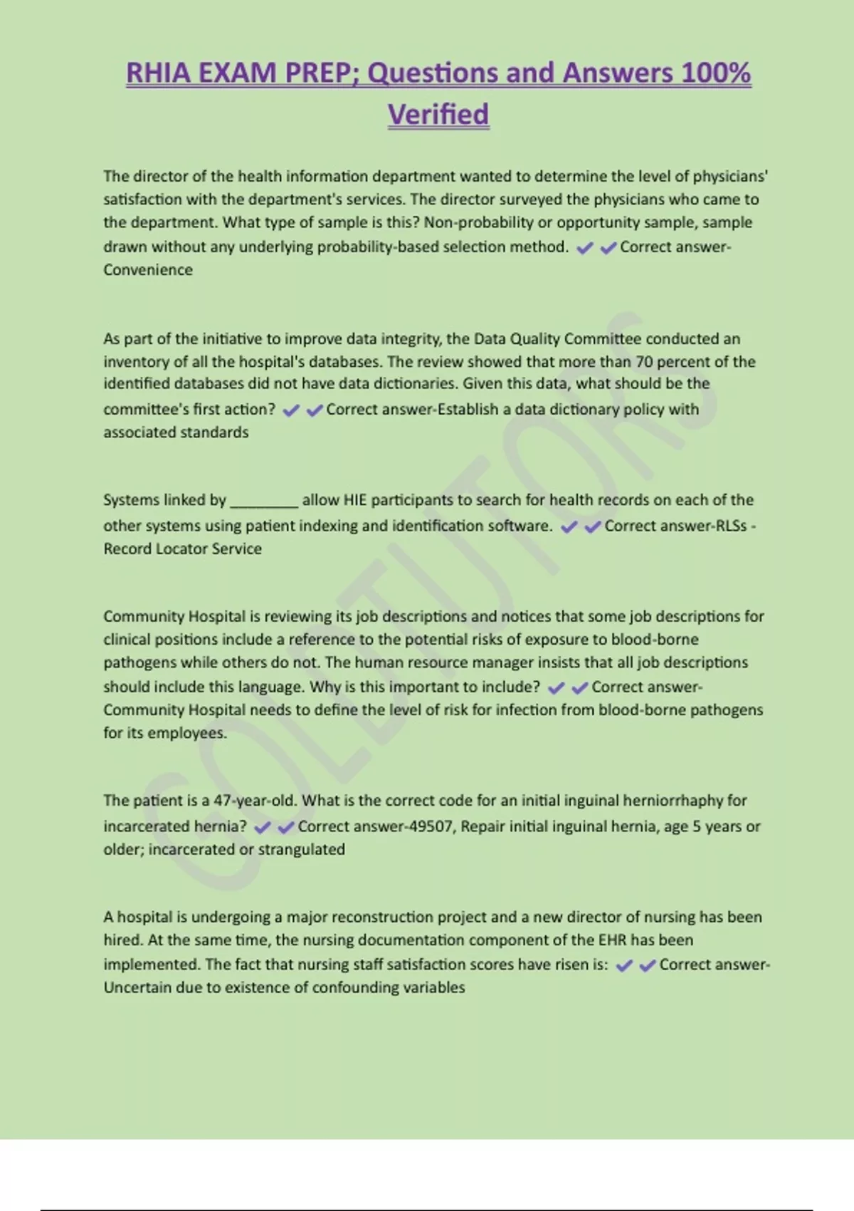 RHIA EXAM PREP; Questions and Answers 100% Verified