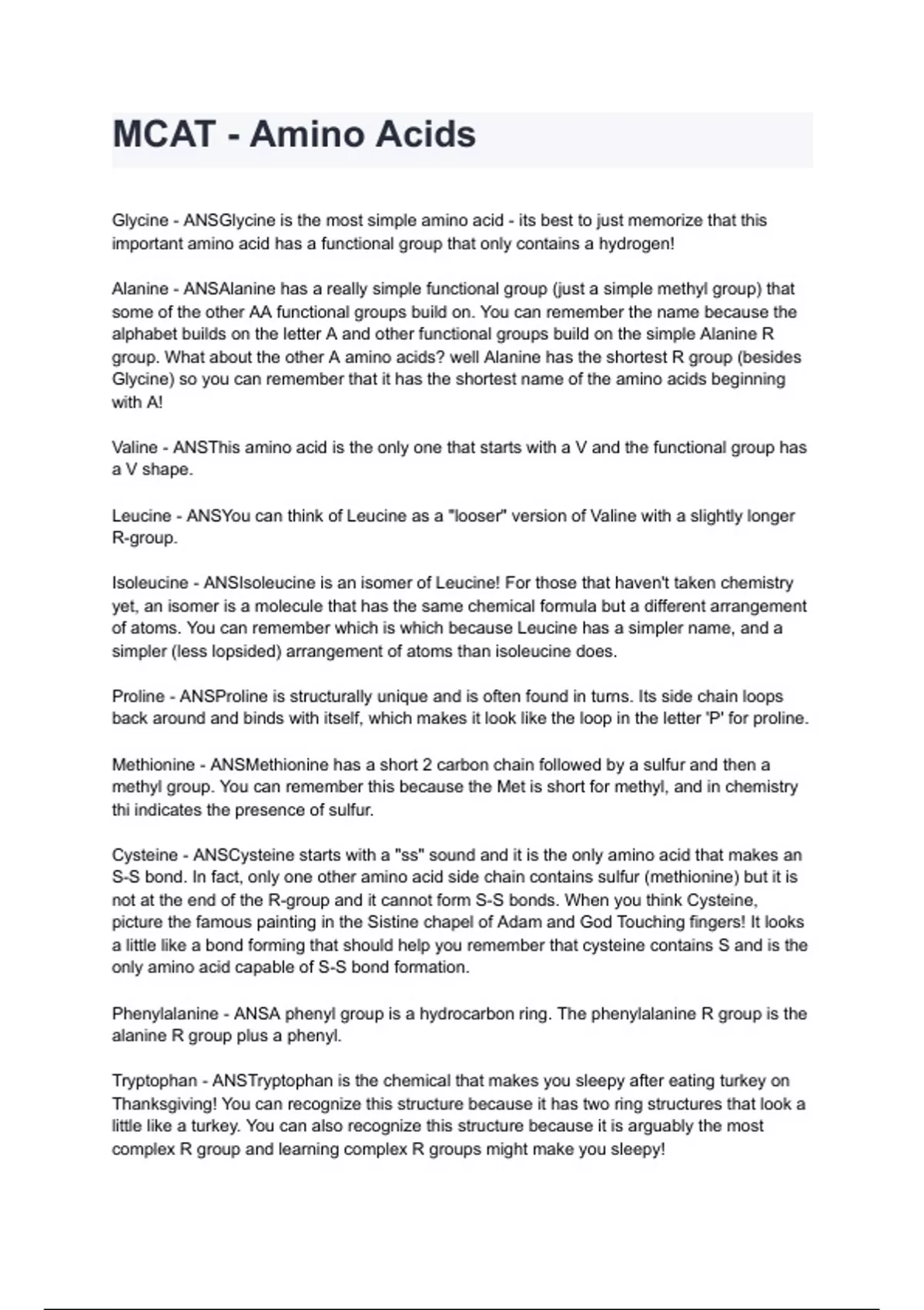 MCAT - Amino Acids