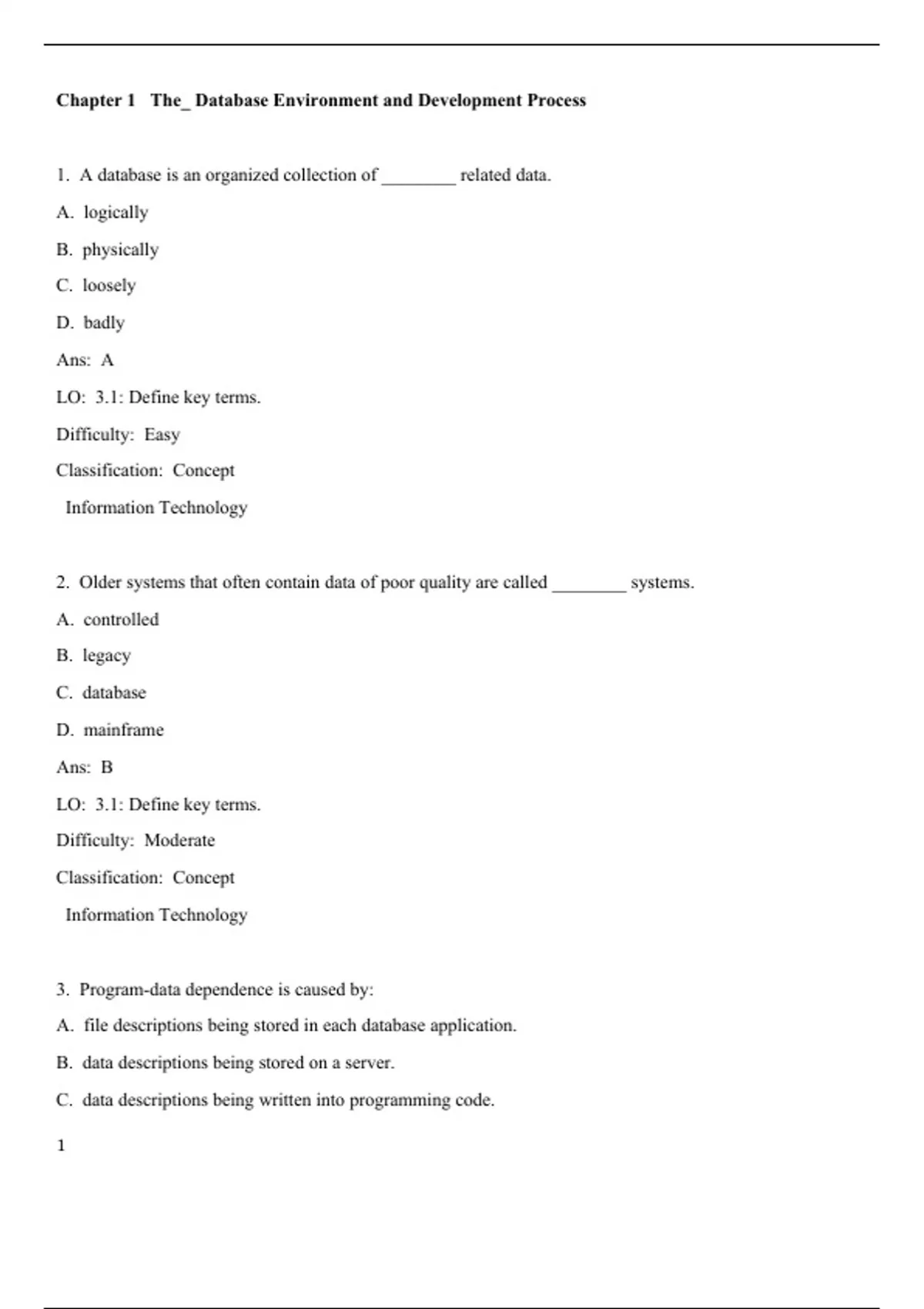 1. A database is an organized collection of ________ related data.
