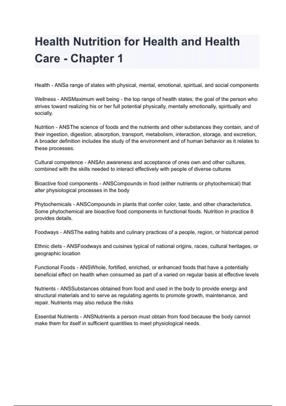 Health Nutrition for Health and Health Care - Chapter 1 Test bank