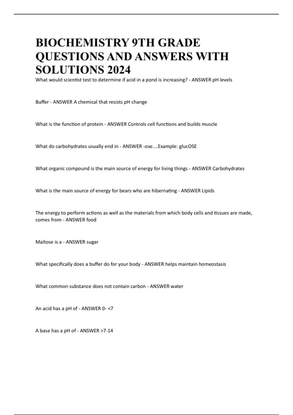 BIOCHEMISTRY 9TH GRADE QUESTIONS AND ANSWERS WITH SOLUTIONS 2024