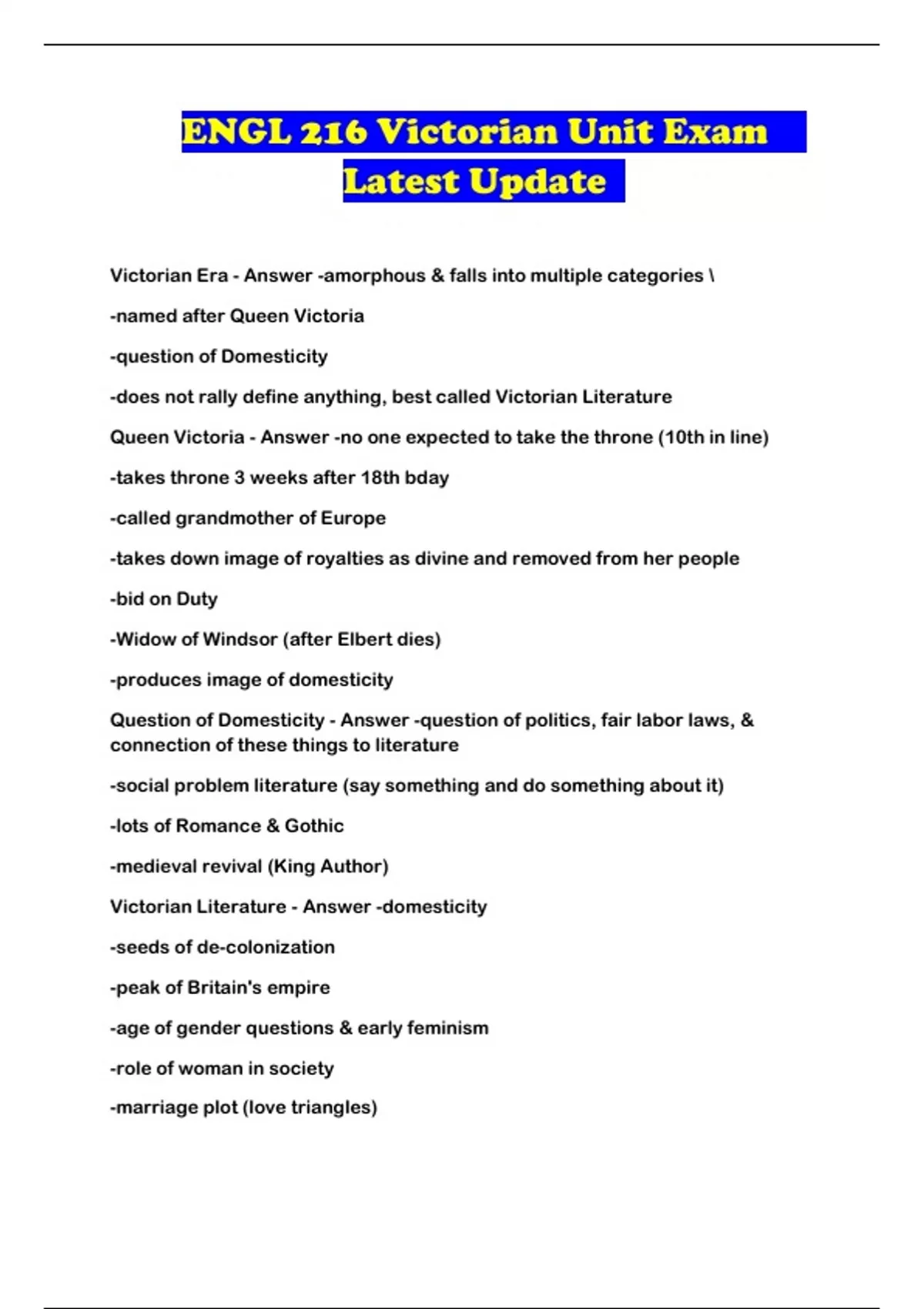 ENGL 216 Victorian Unit Exam Latest Update ...